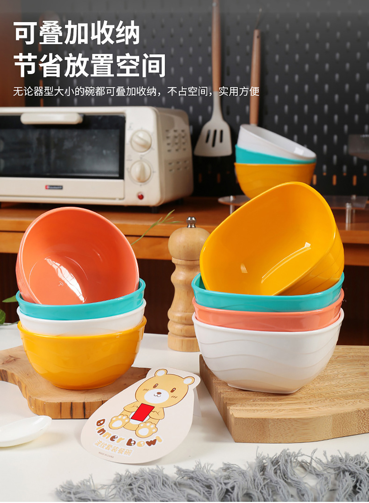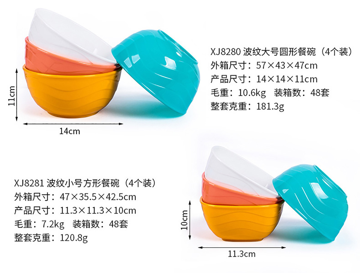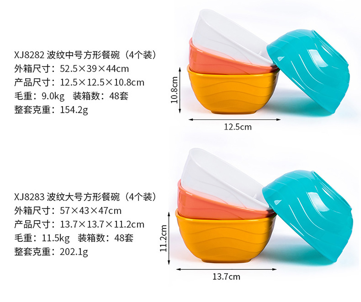 波紋圓形/方形餐碗  小號(hào)/中號(hào)/大號(hào)(4個(gè)裝)