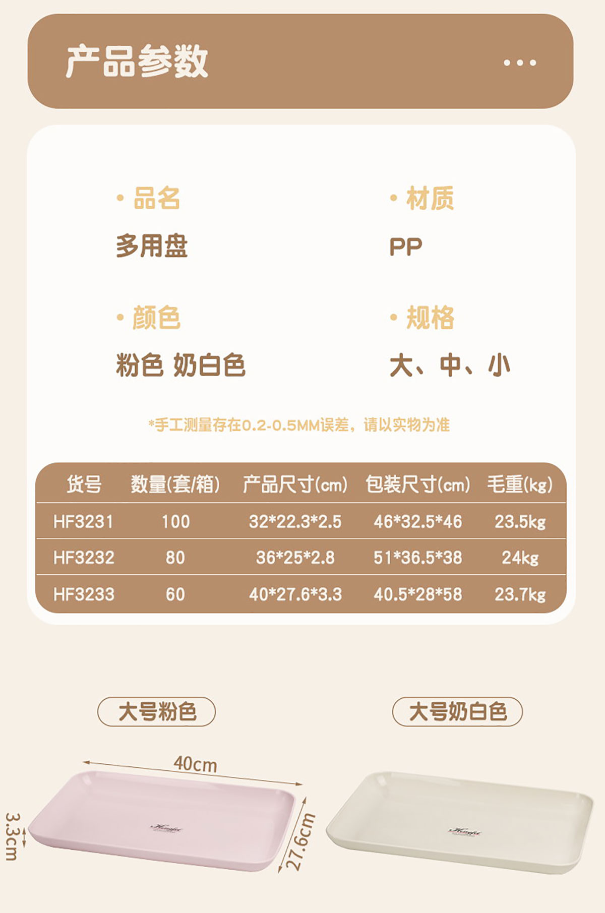 Size: HF-3231(小號):320*223*25mm HF-3232(中號):360*250*28mm HF-3233(大號):400*276*33mm
