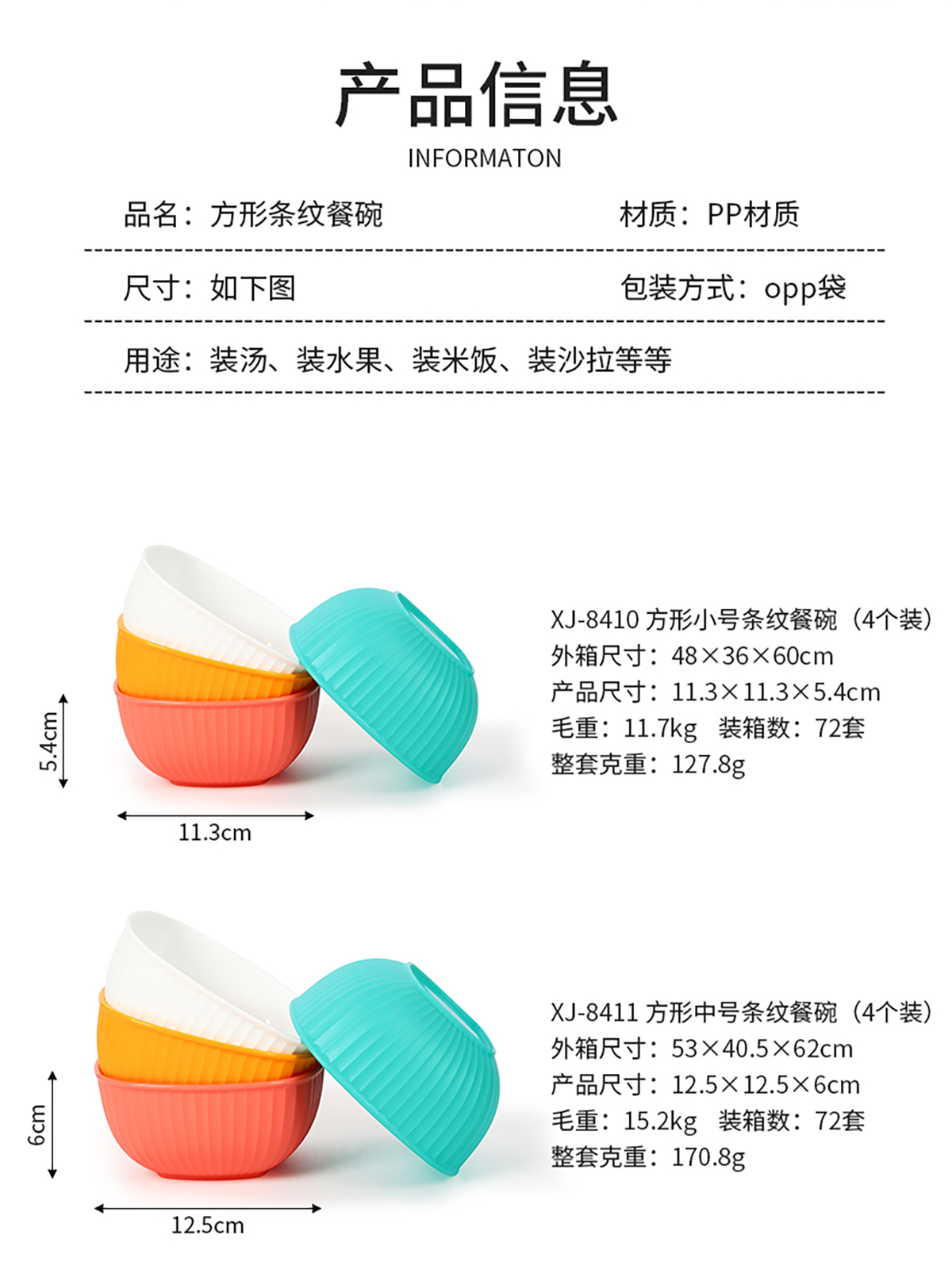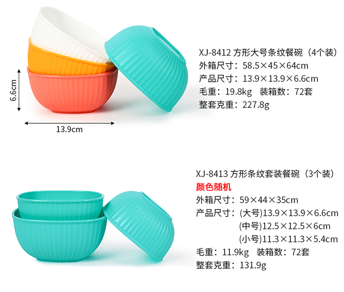 方形小號/中號/大號/套裝條紋餐碗