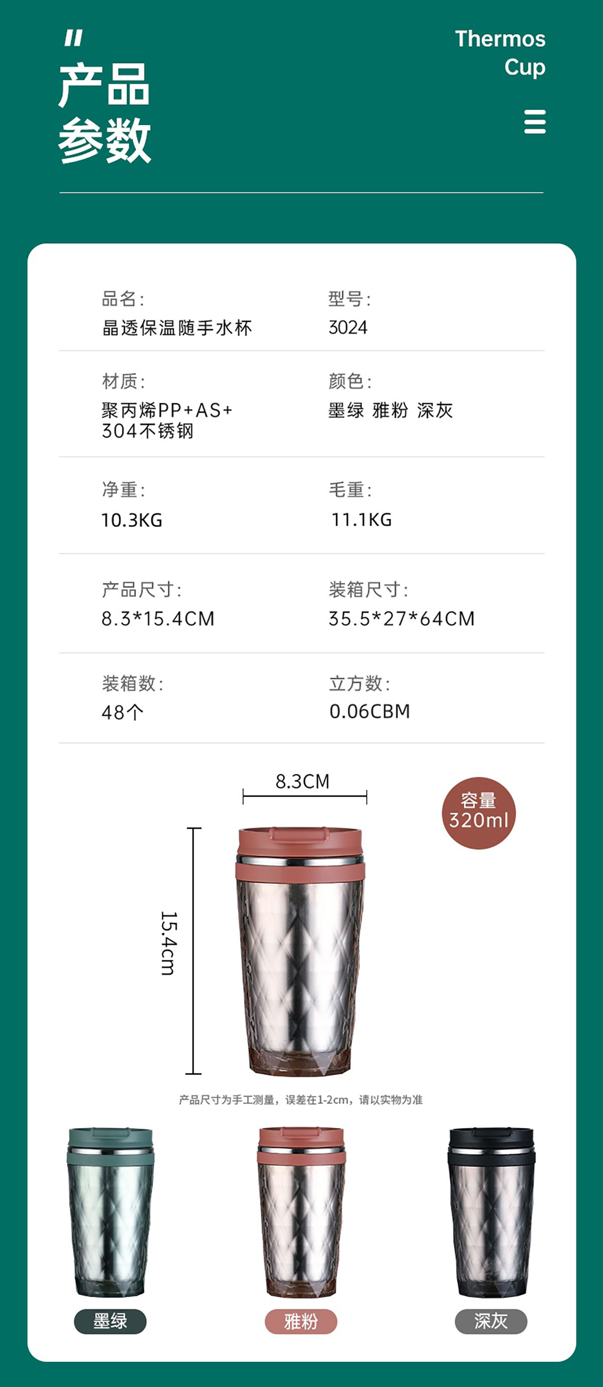 320ml晶透保溫隨手水杯