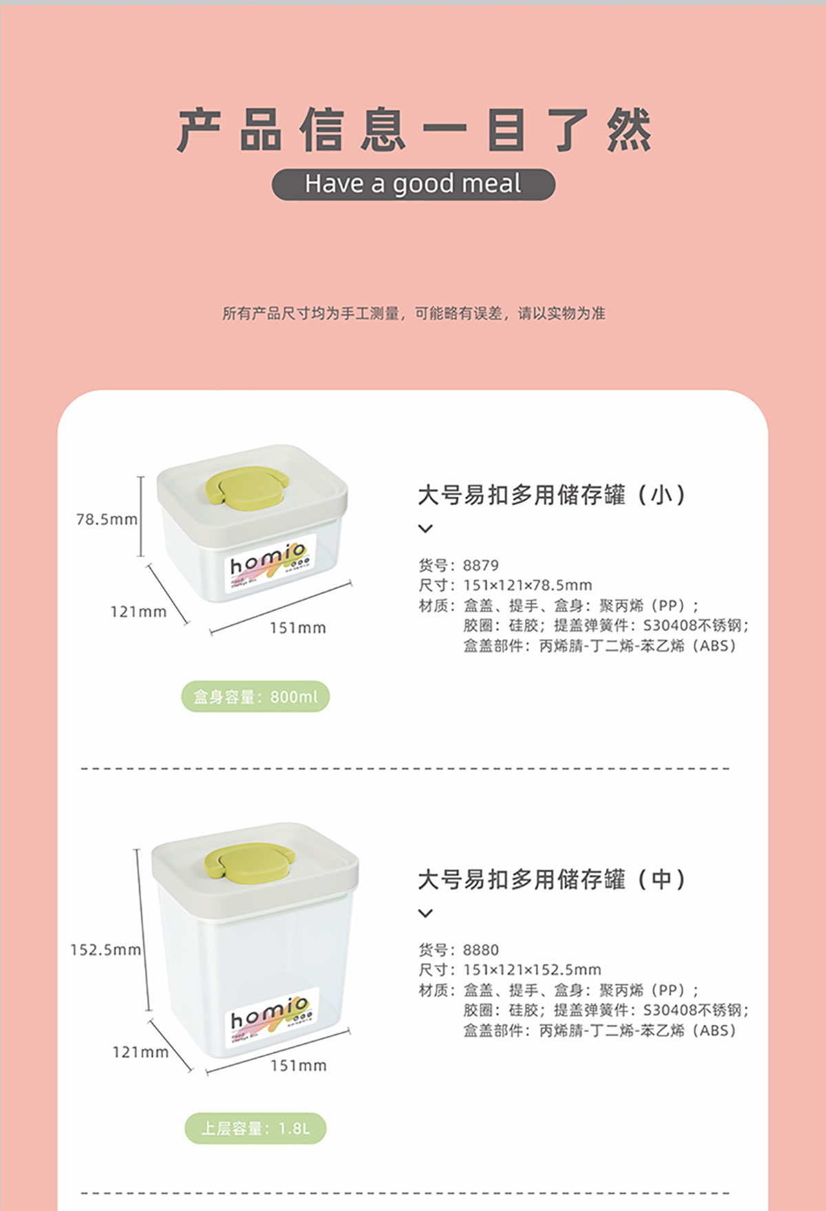 大號/小號易扣多用儲存罐(小號/中號/大號)