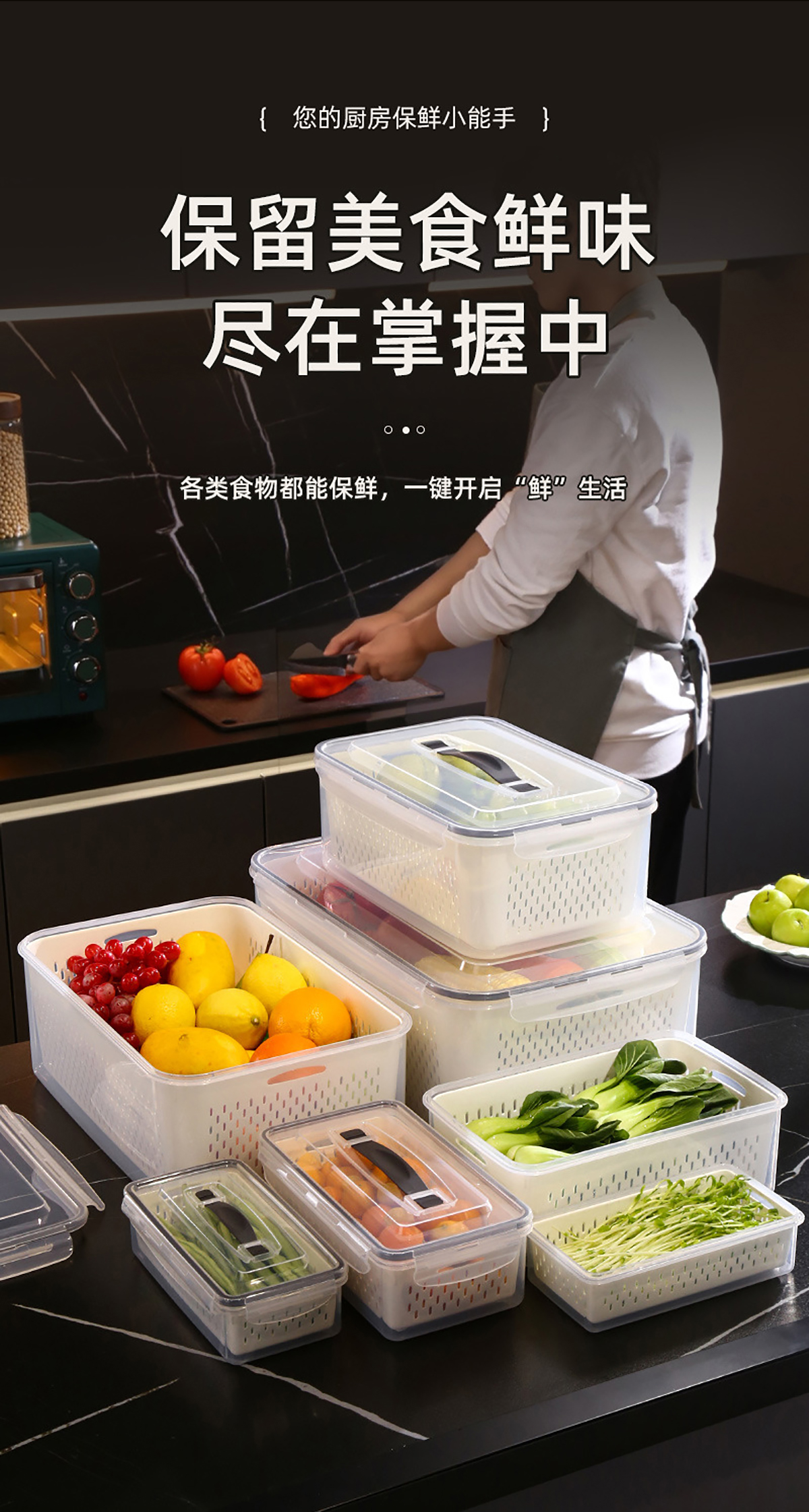 手提密封瀝水保鮮盒(800ml/1.7L/3.4L/6.0L/10.5L/16.5L)