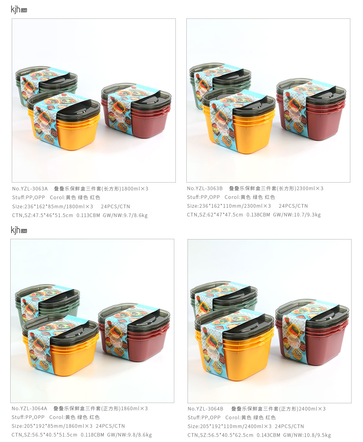 YZL-3064A(正方形):205*192*85mm/1860ml×3