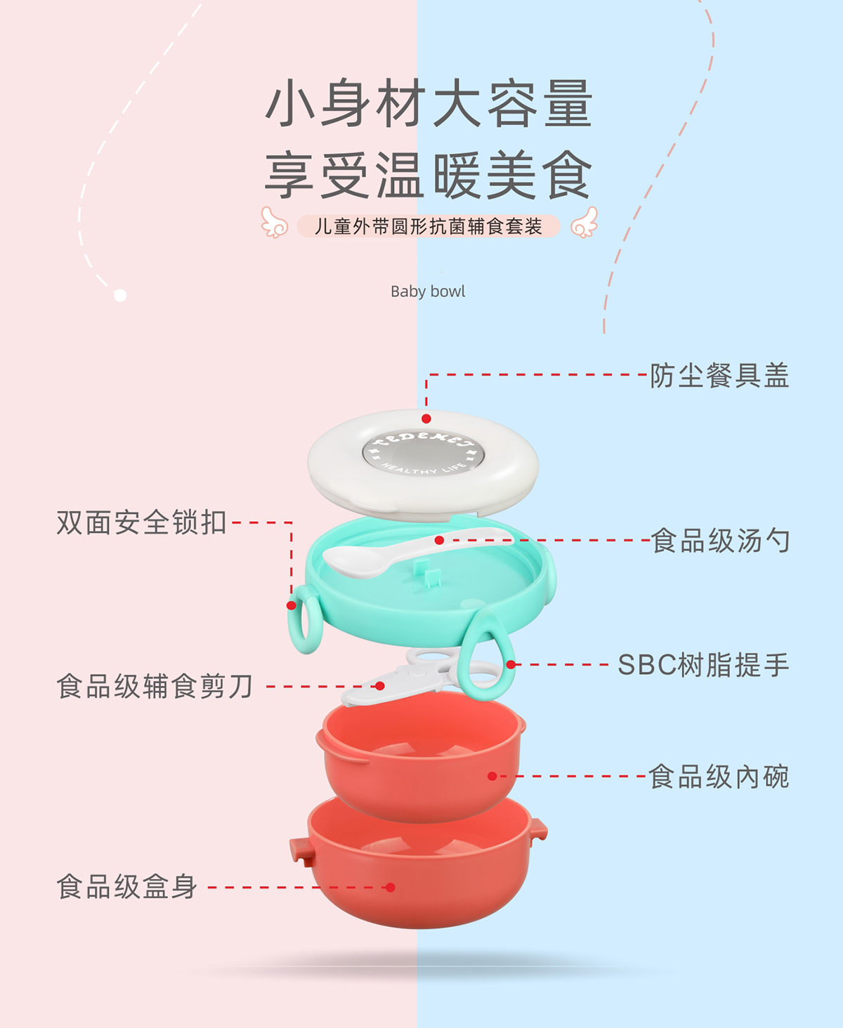 兒童外帶圓形抗菌輔食碗