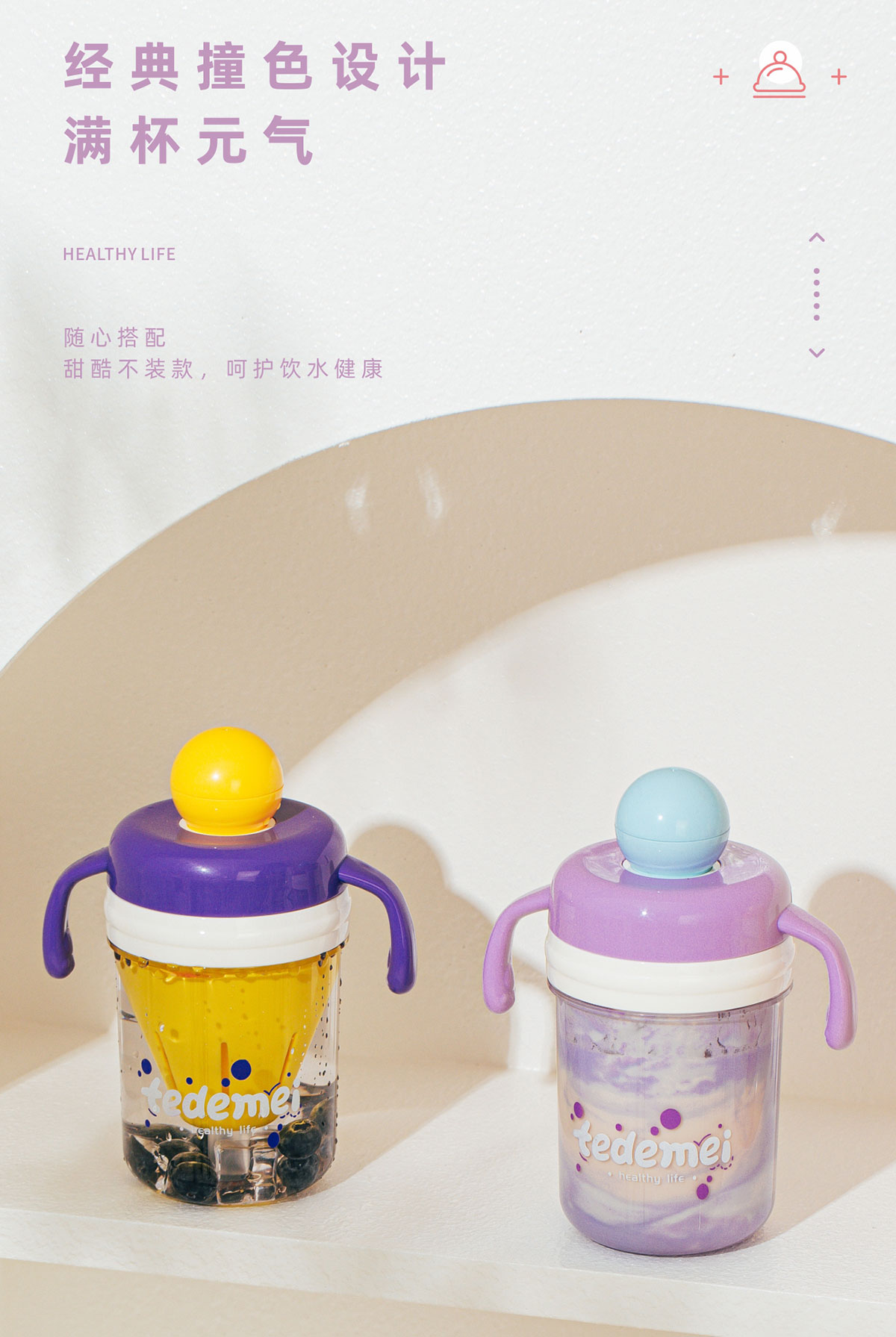 夏日繽紛隨手杯(帶把手)490ml