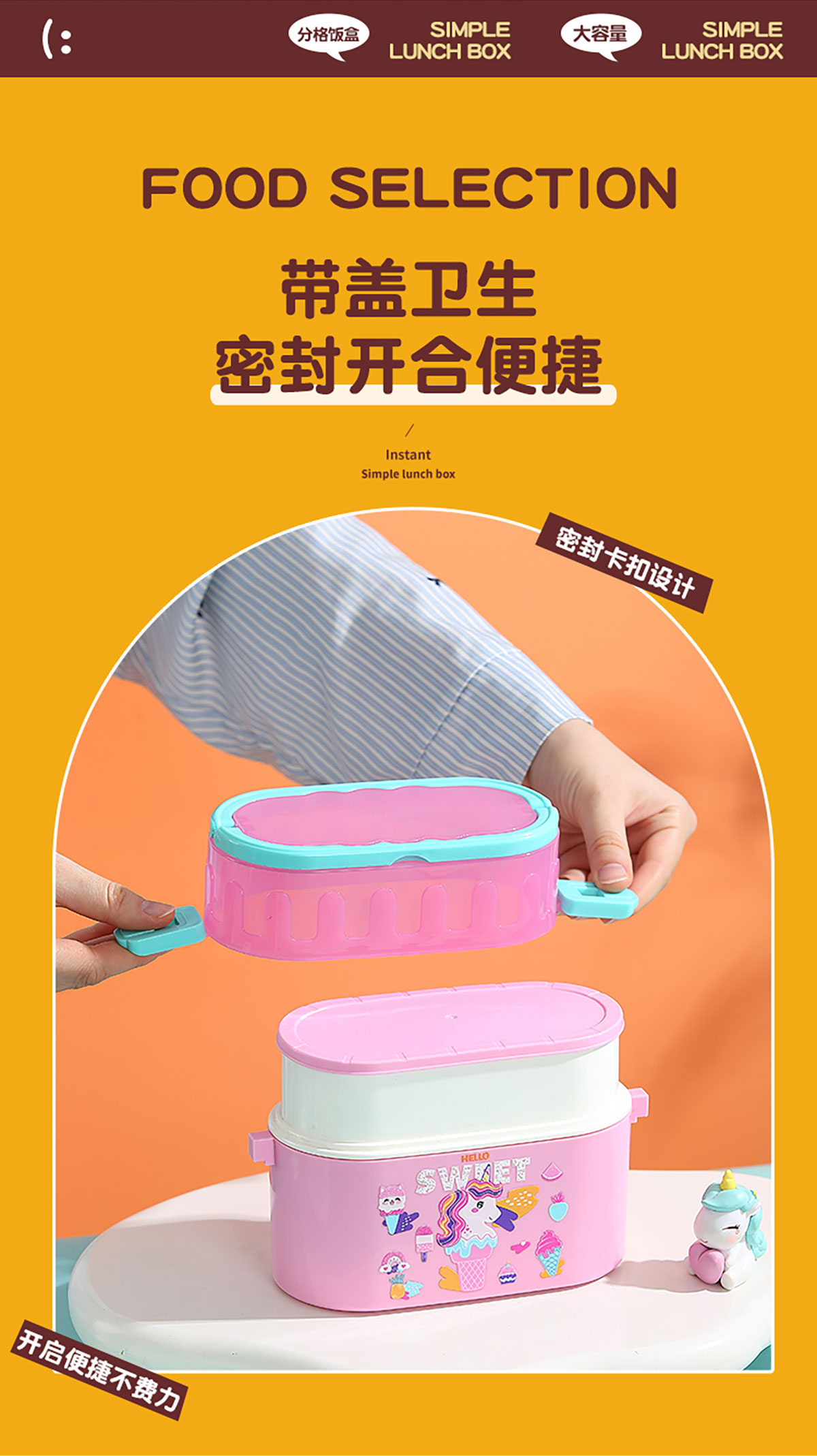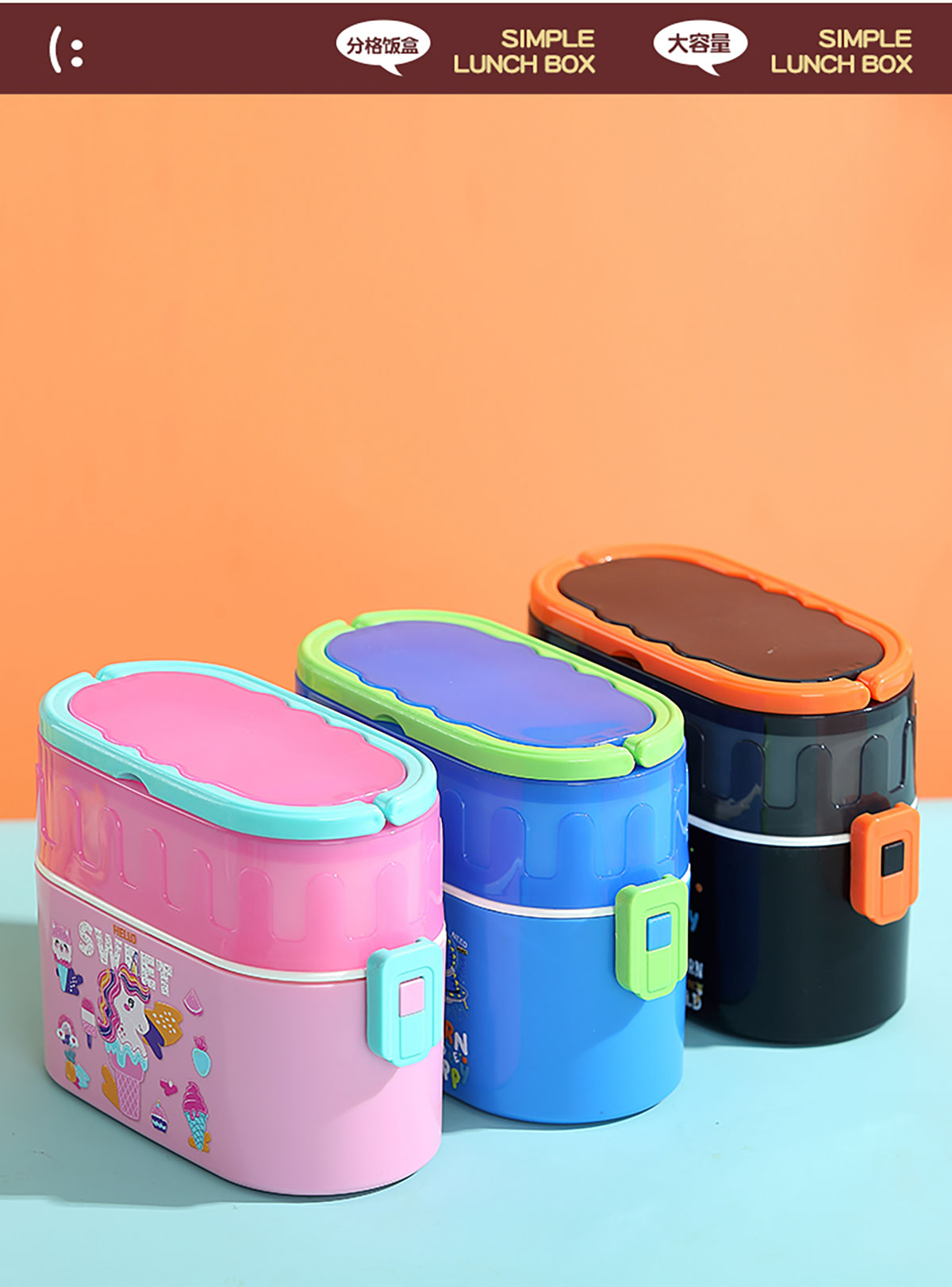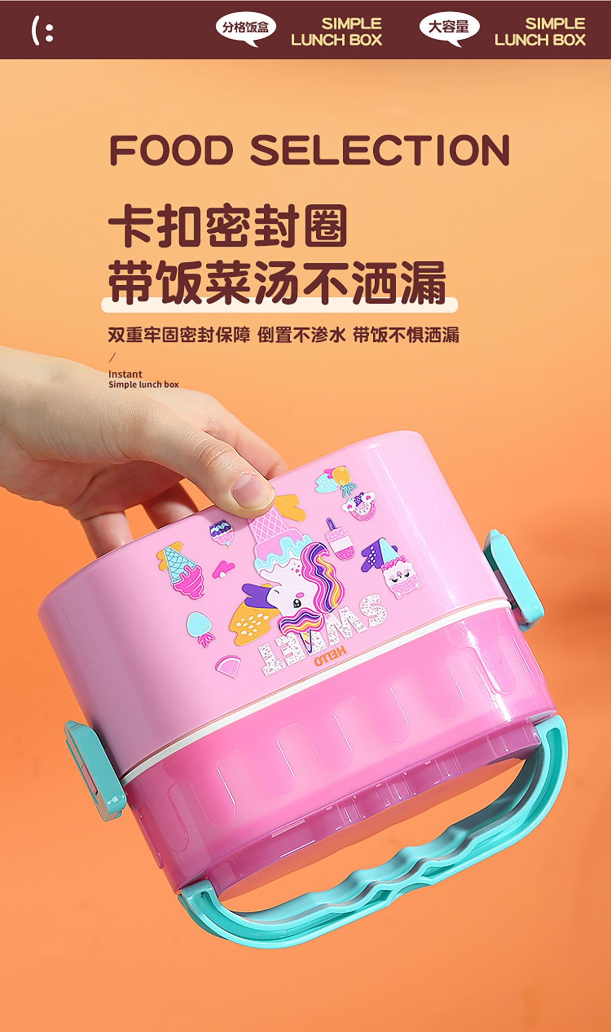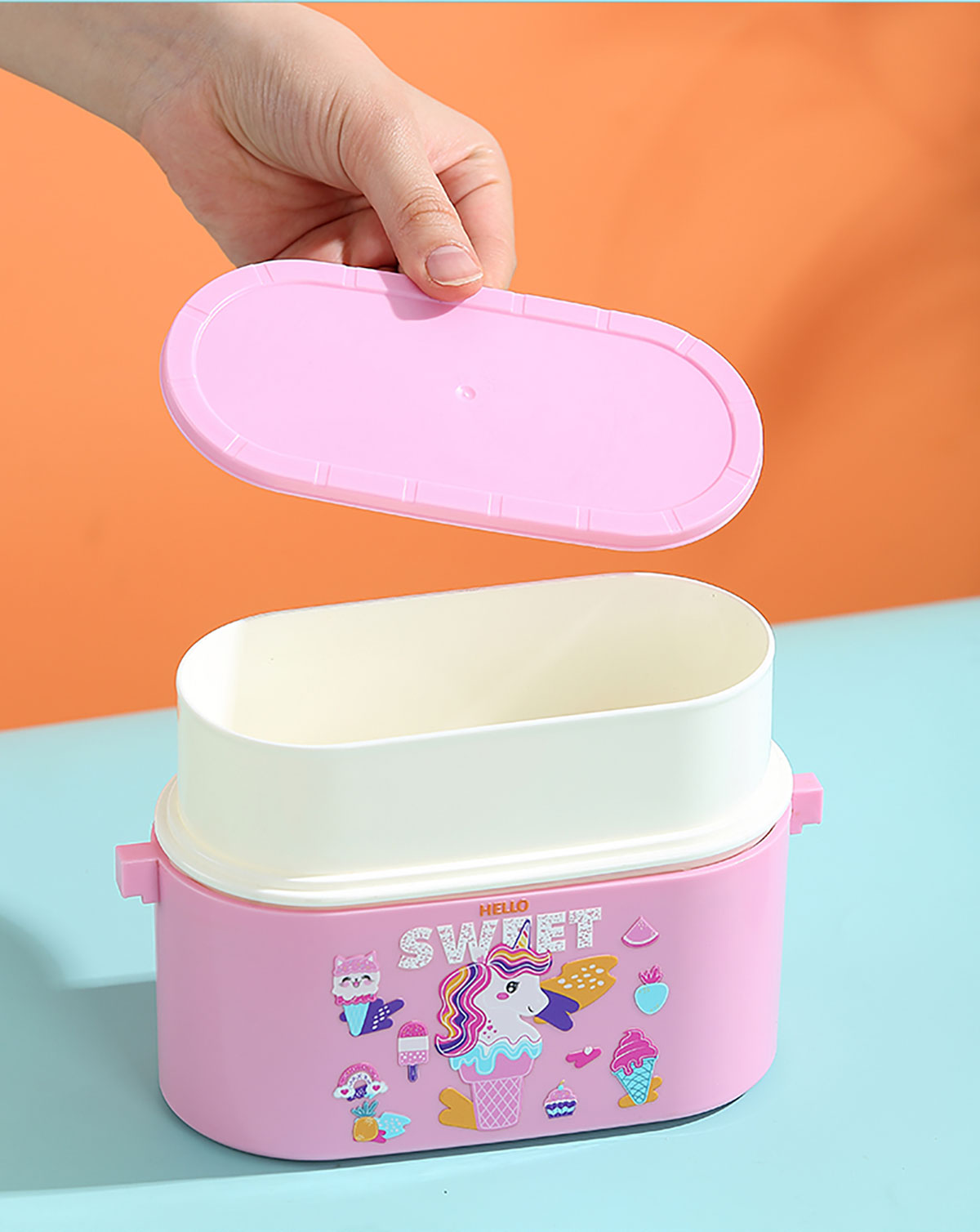 卡通雙層密封餐盒(橢圓形)950ml+PP勺