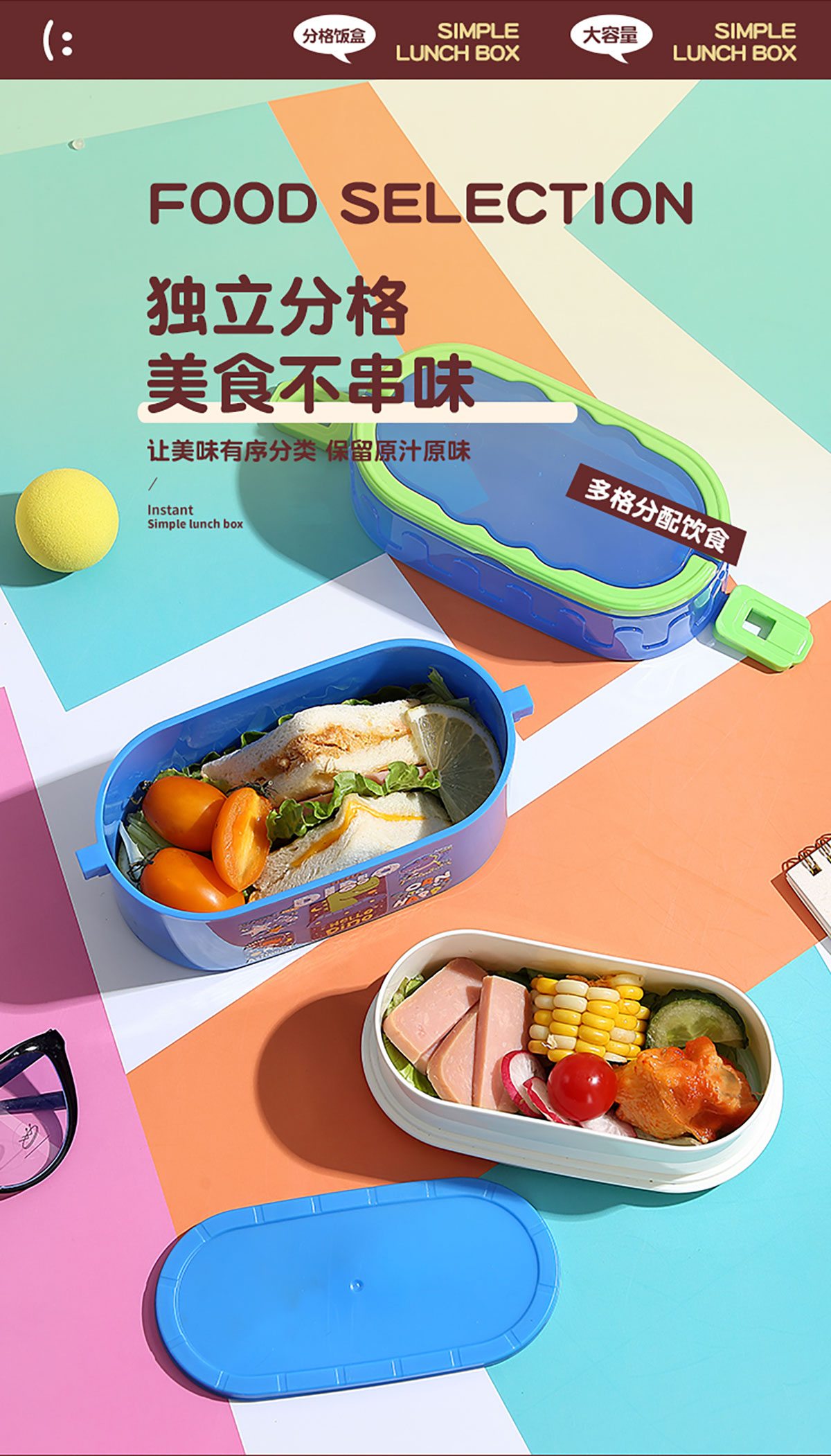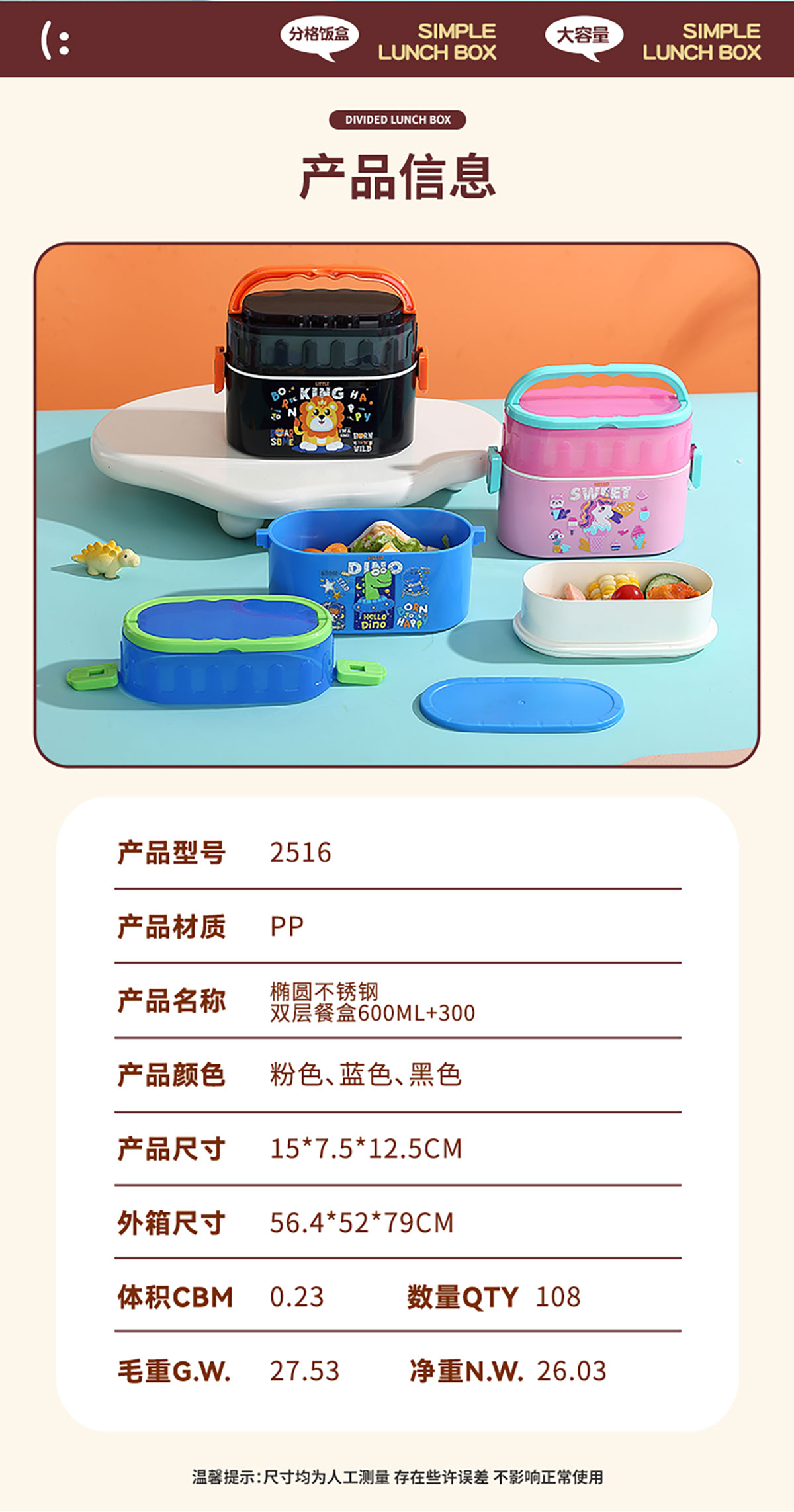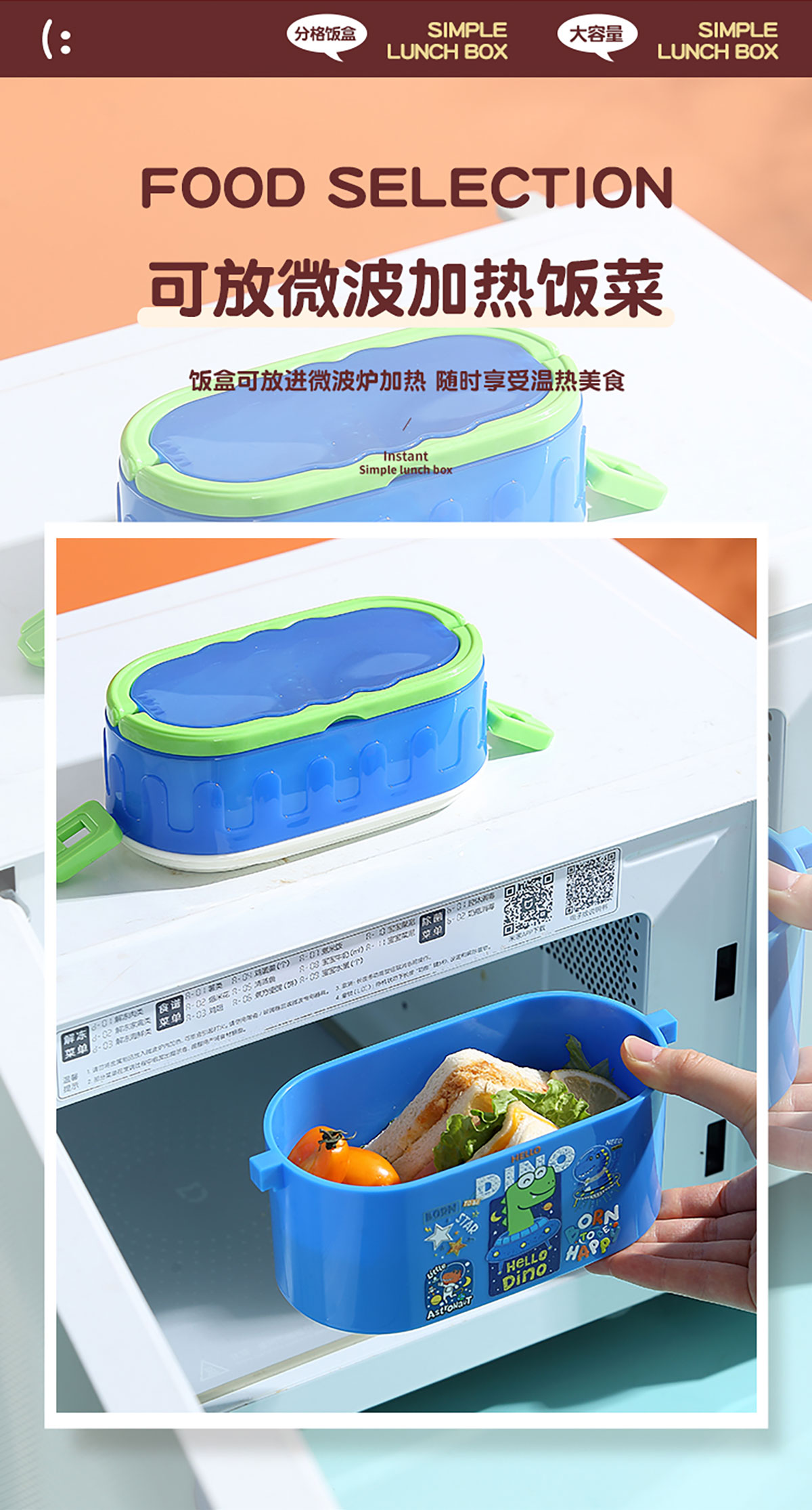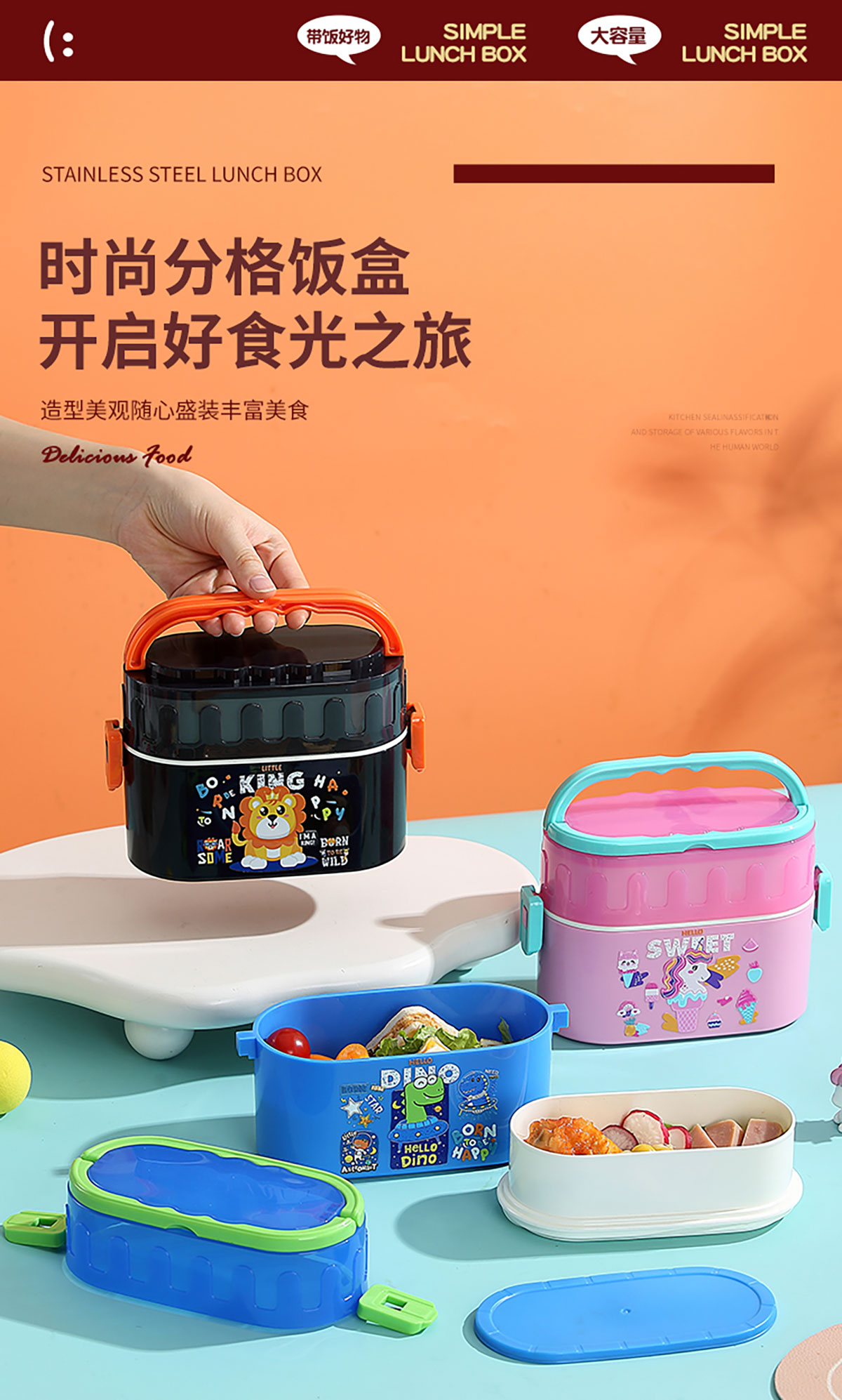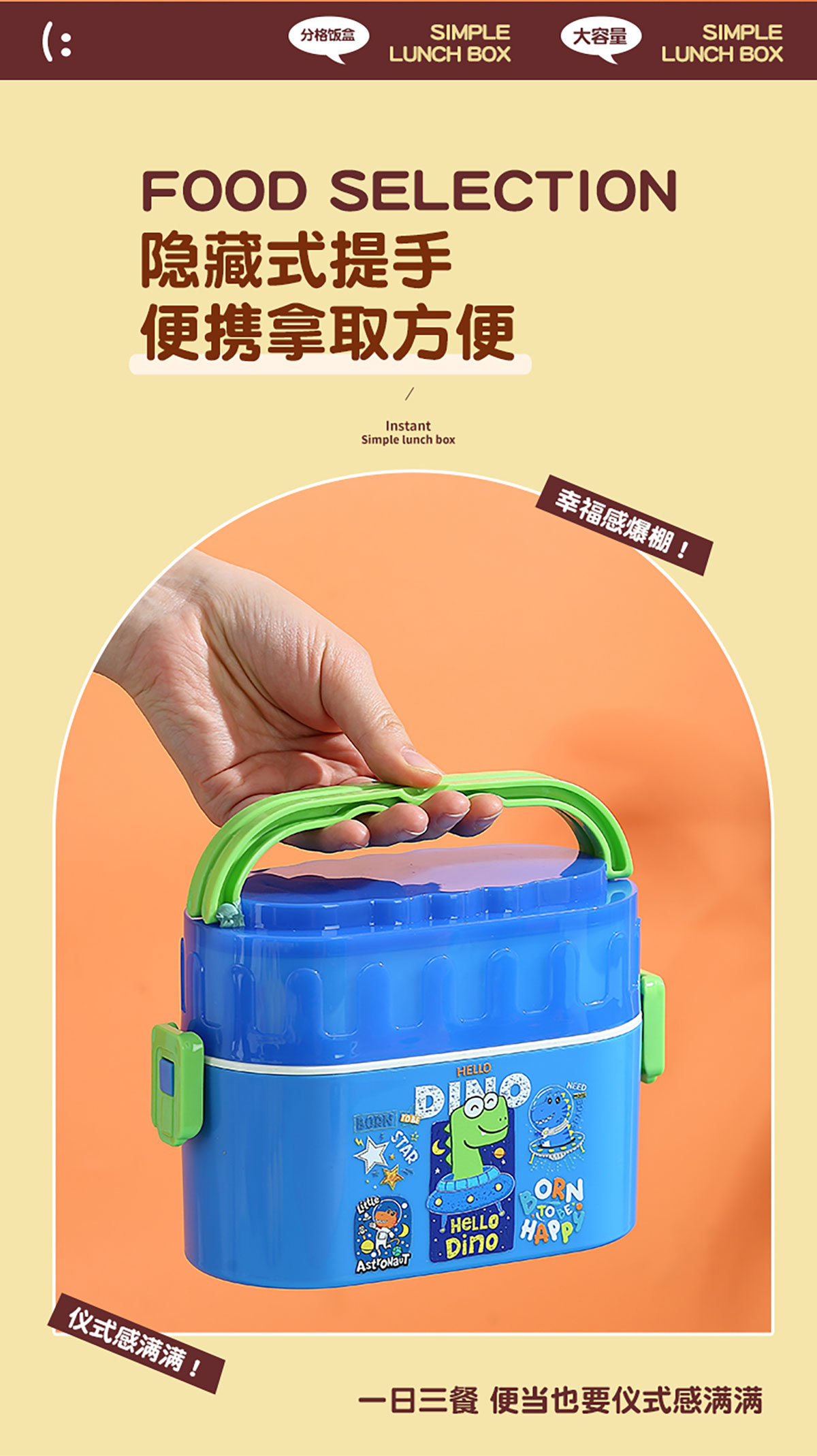 卡通雙層密封餐盒(橢圓形)950ml+PP勺