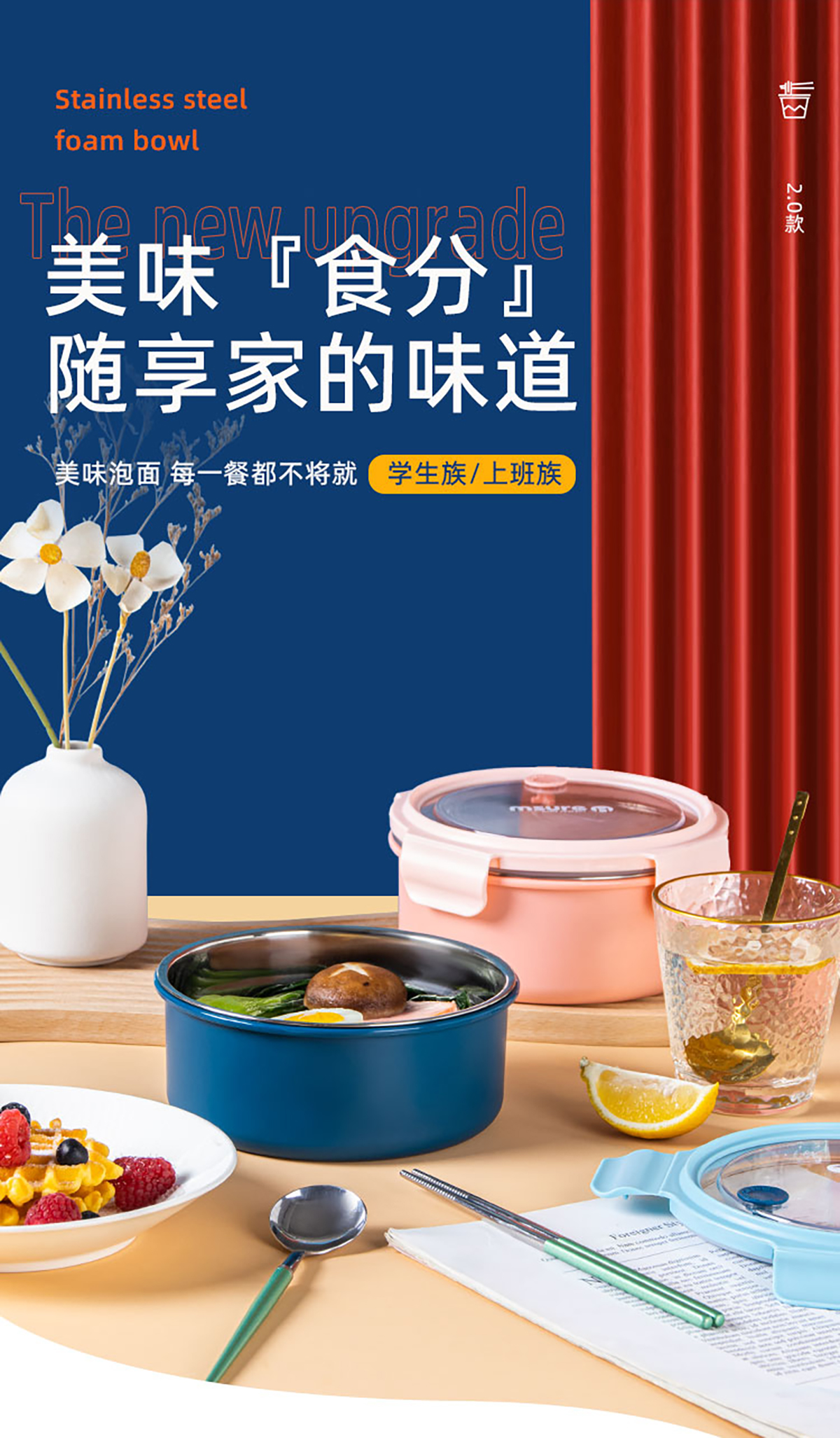 新食代不銹鋼飯盒1.1L(20年色款)