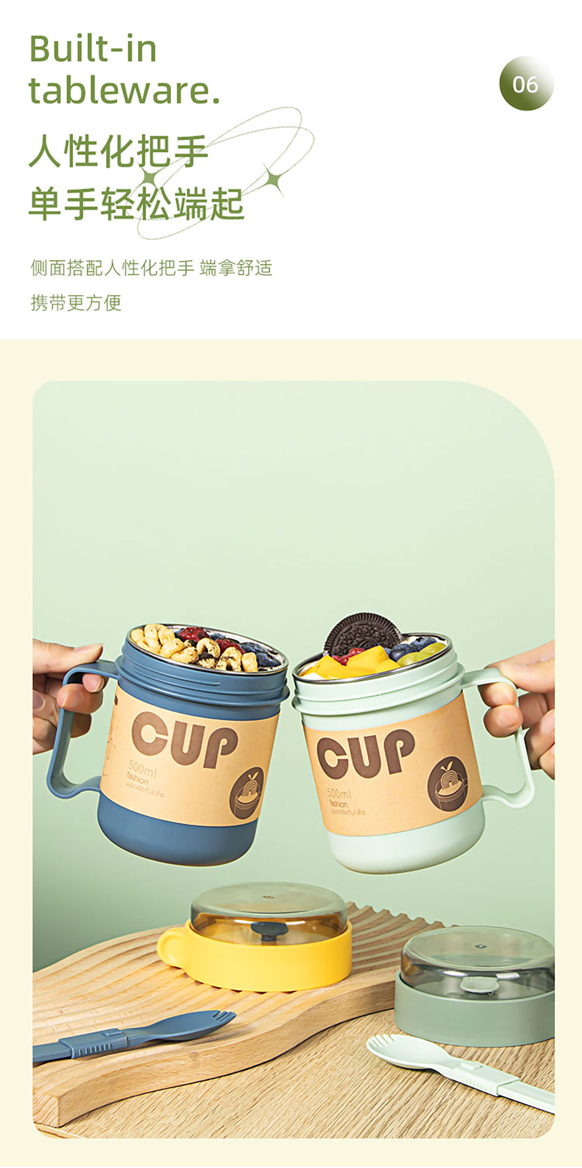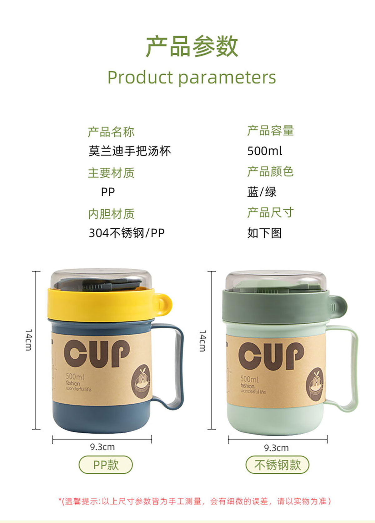 莫蘭迪手把湯杯(塑料/不銹鋼)