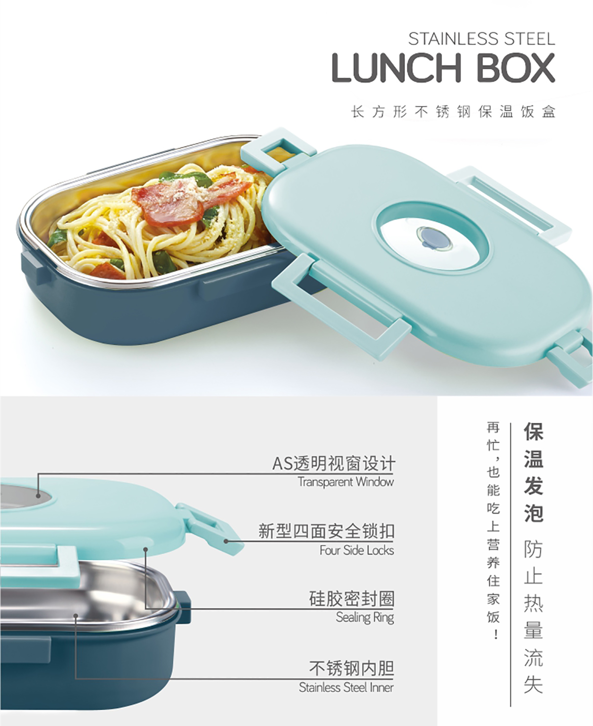 (特得美))長方形/長方形大號(hào)不銹鋼保溫飯盒(加大版6951)