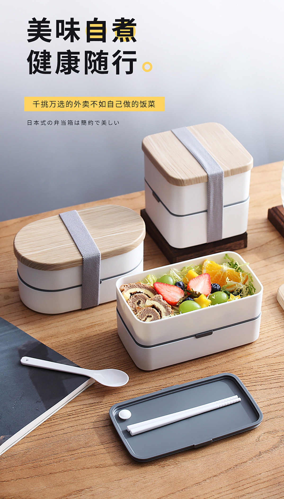 日式木紋便當(dāng)盒長(zhǎng)方950ml/圓900ml/正方1200ml
