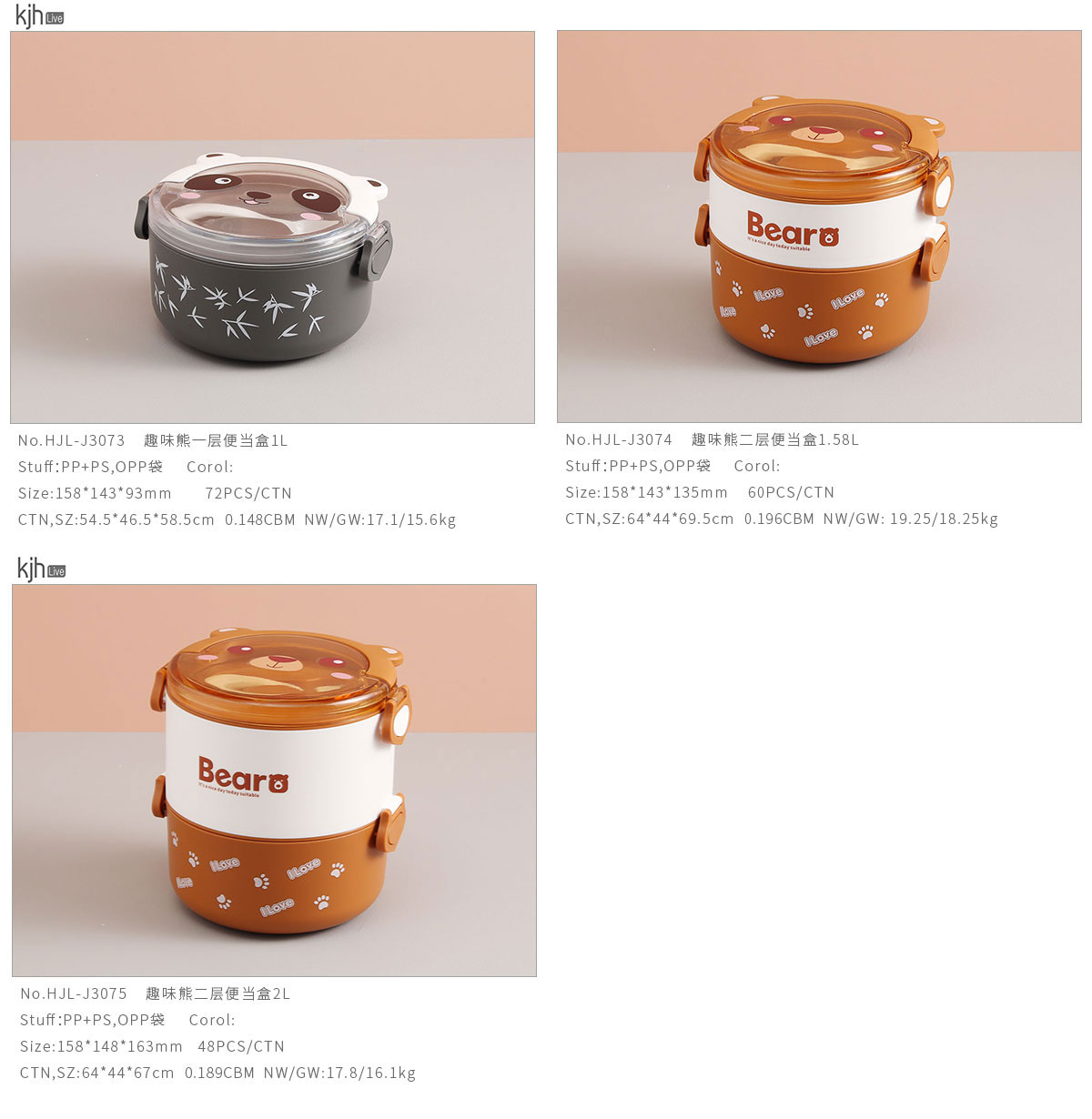 趣味熊一層/二層便當(dāng)盒1L/1.58L/2L
