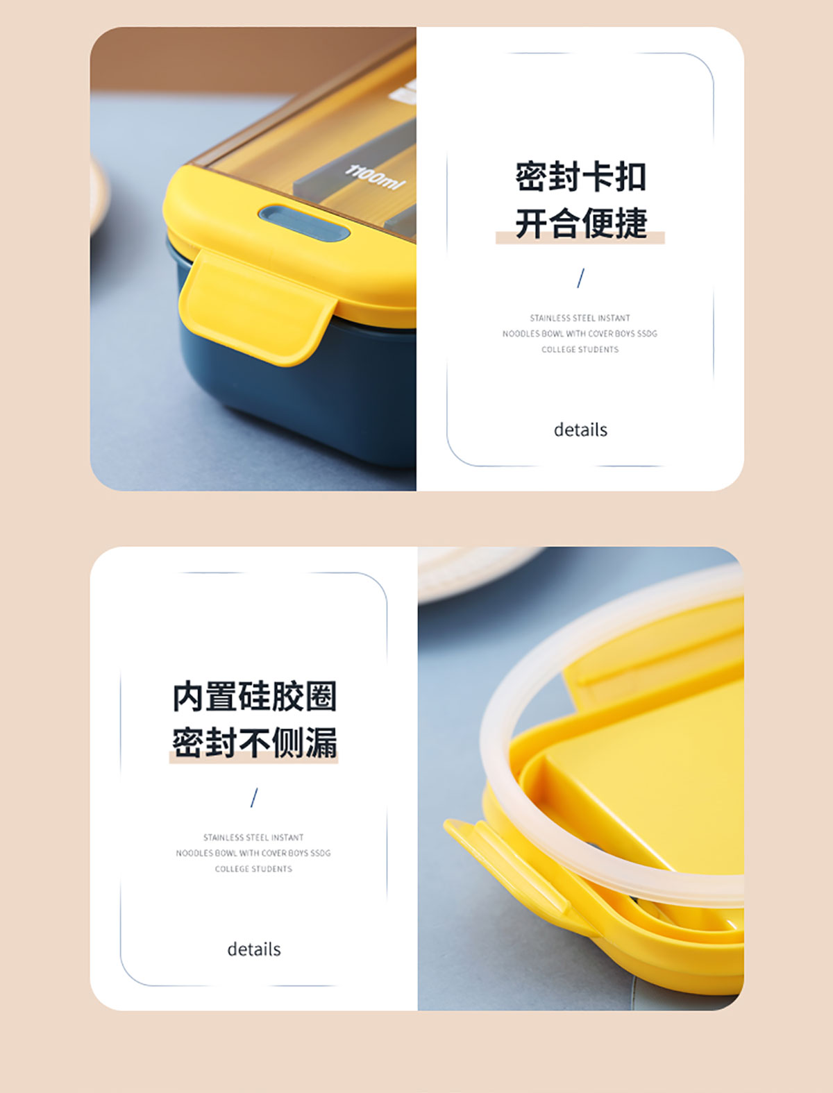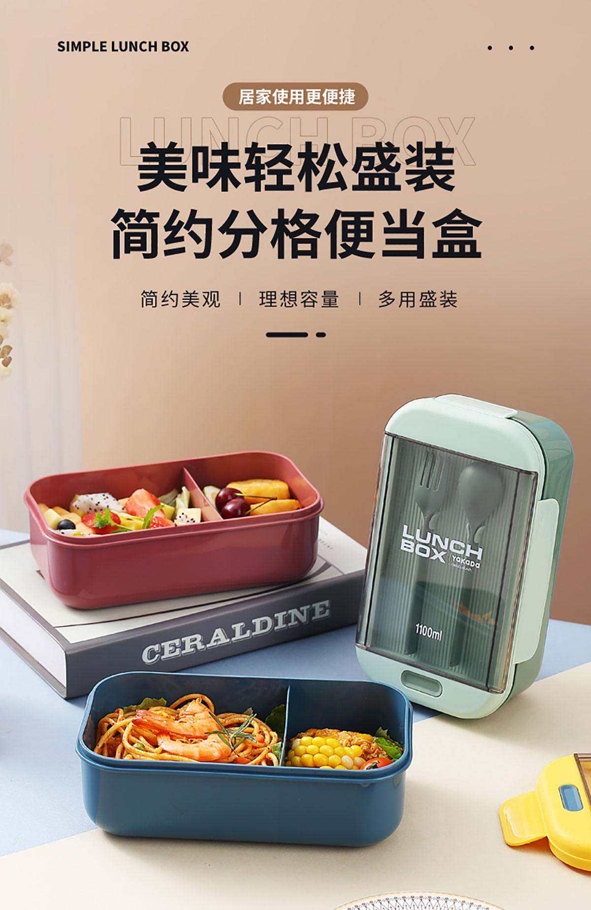 長(zhǎng)方透明蓋飯盒1100ml
