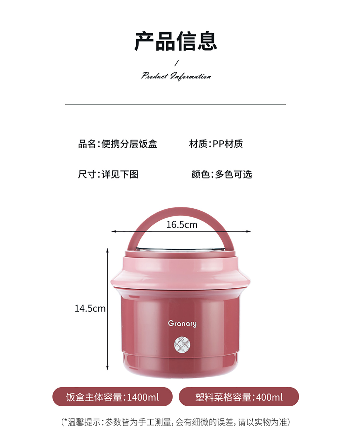 圓形糧倉提鍋內(nèi)格1150ml菜格350ml