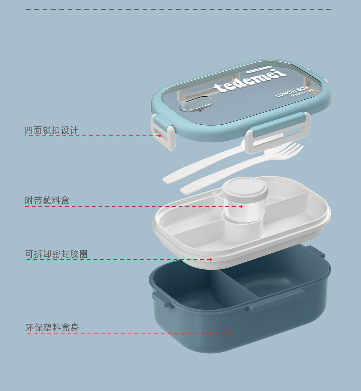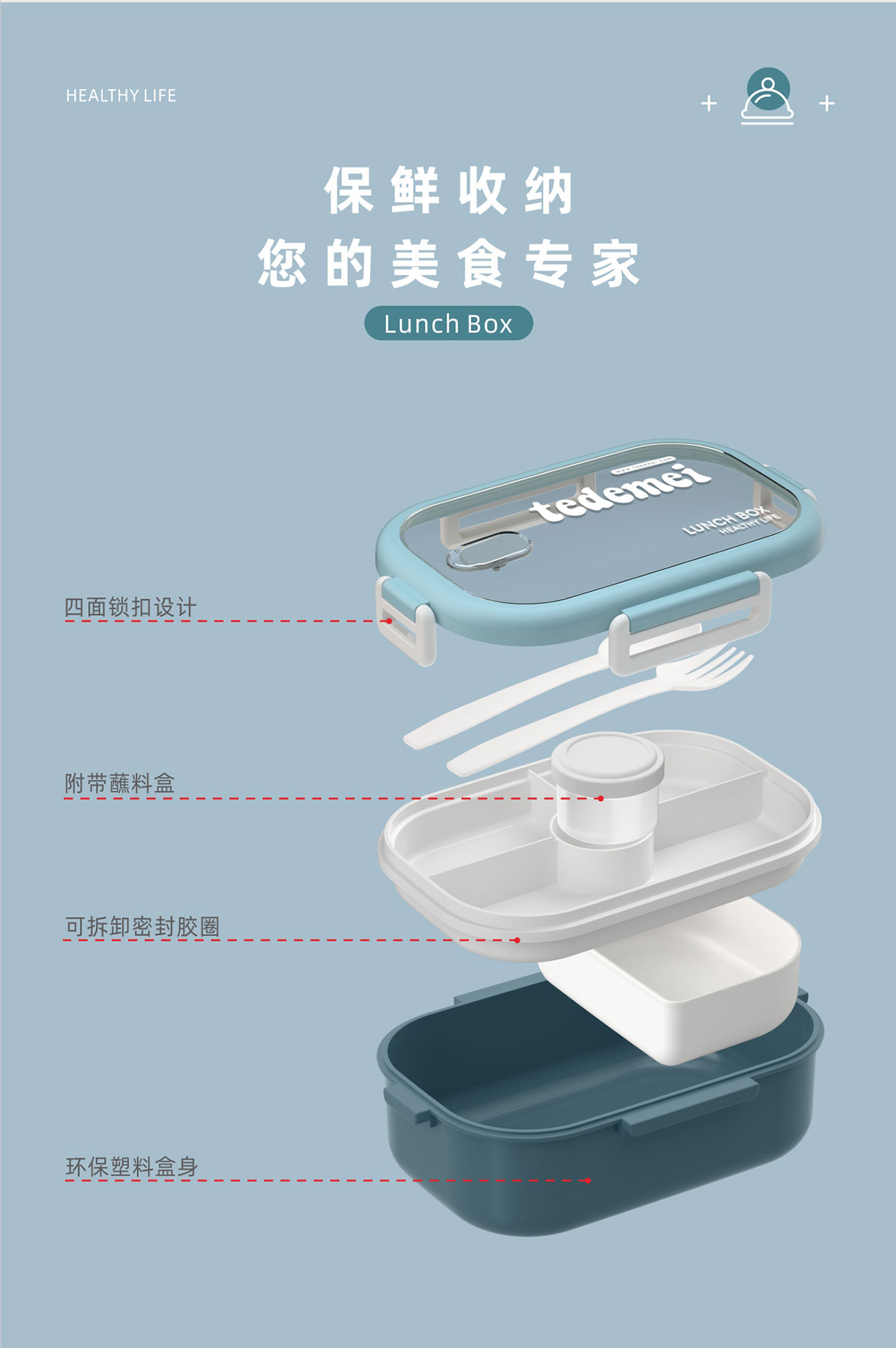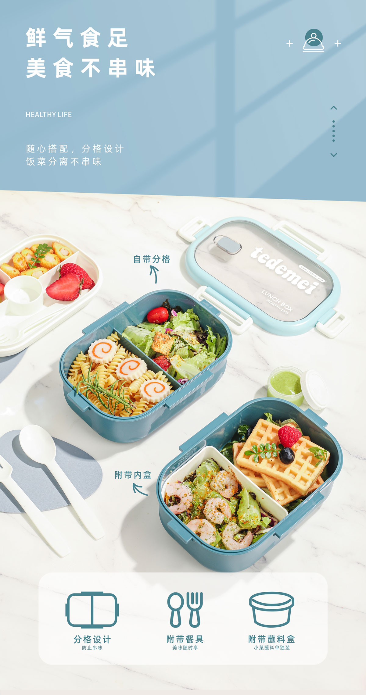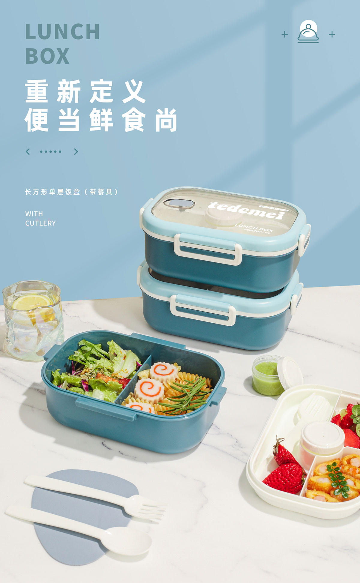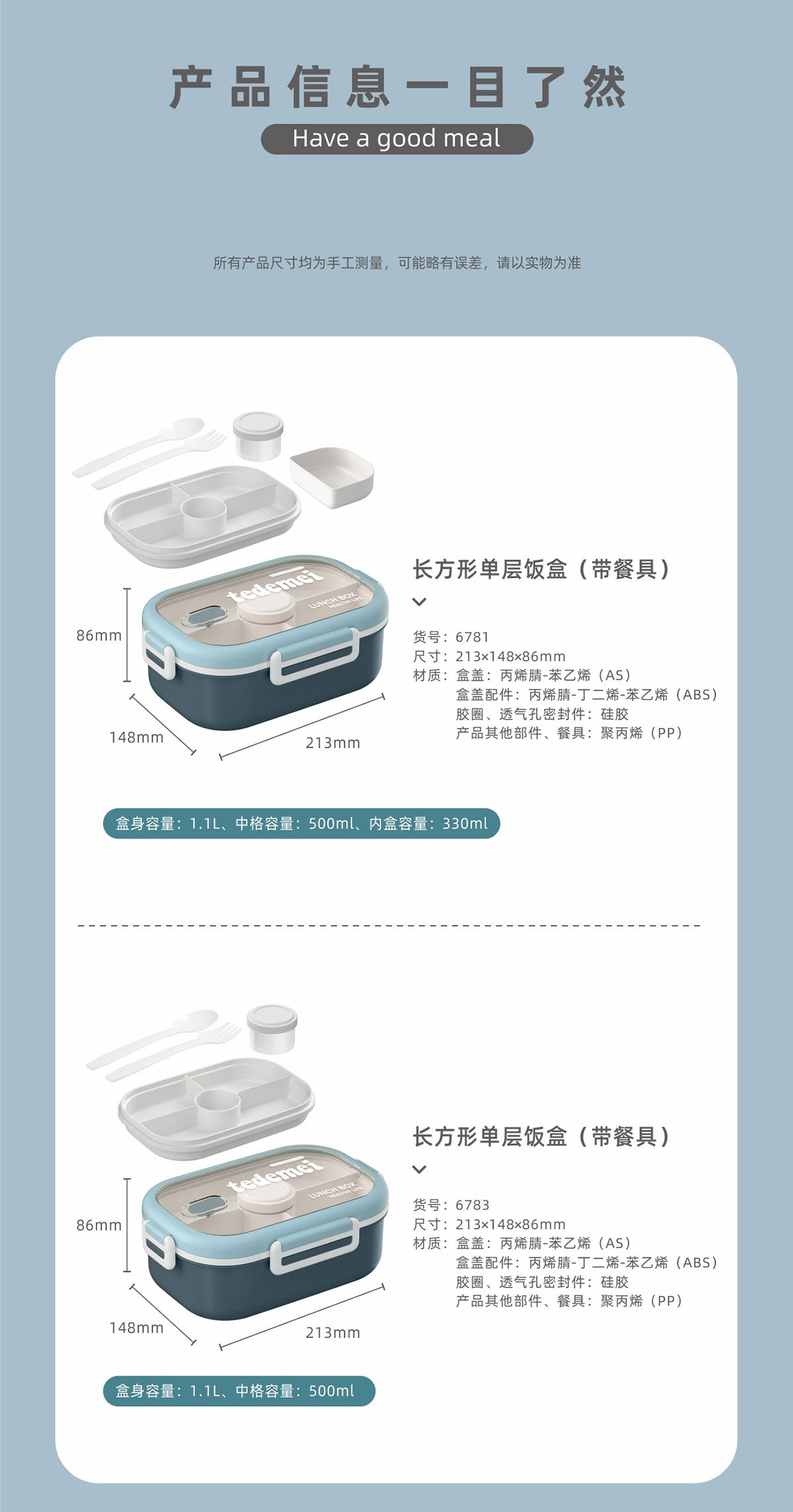 長(zhǎng)方形單層飯盒(帶餐具)1.1L+500ml+330ml/1.1L+500ml