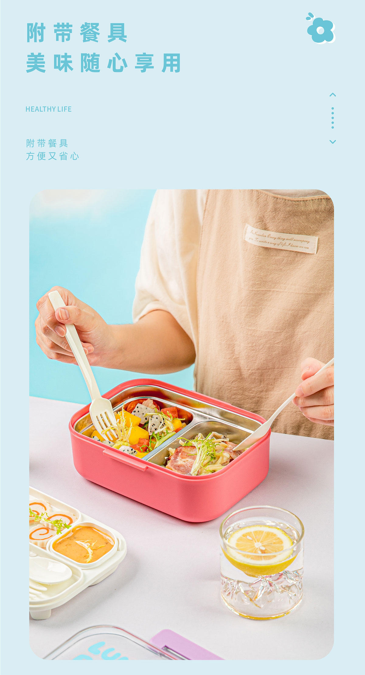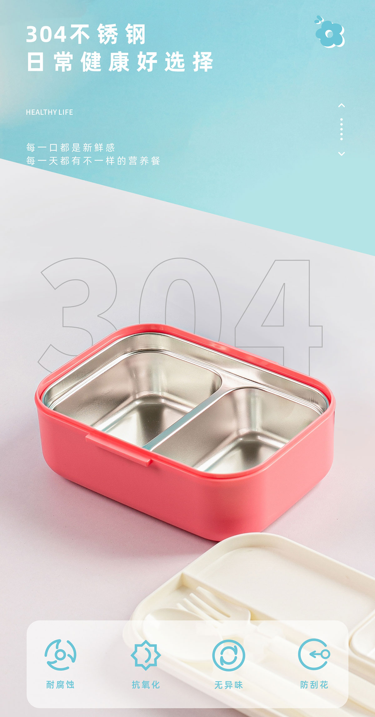 長(zhǎng)方形不銹鋼餐盒(帶餐具)