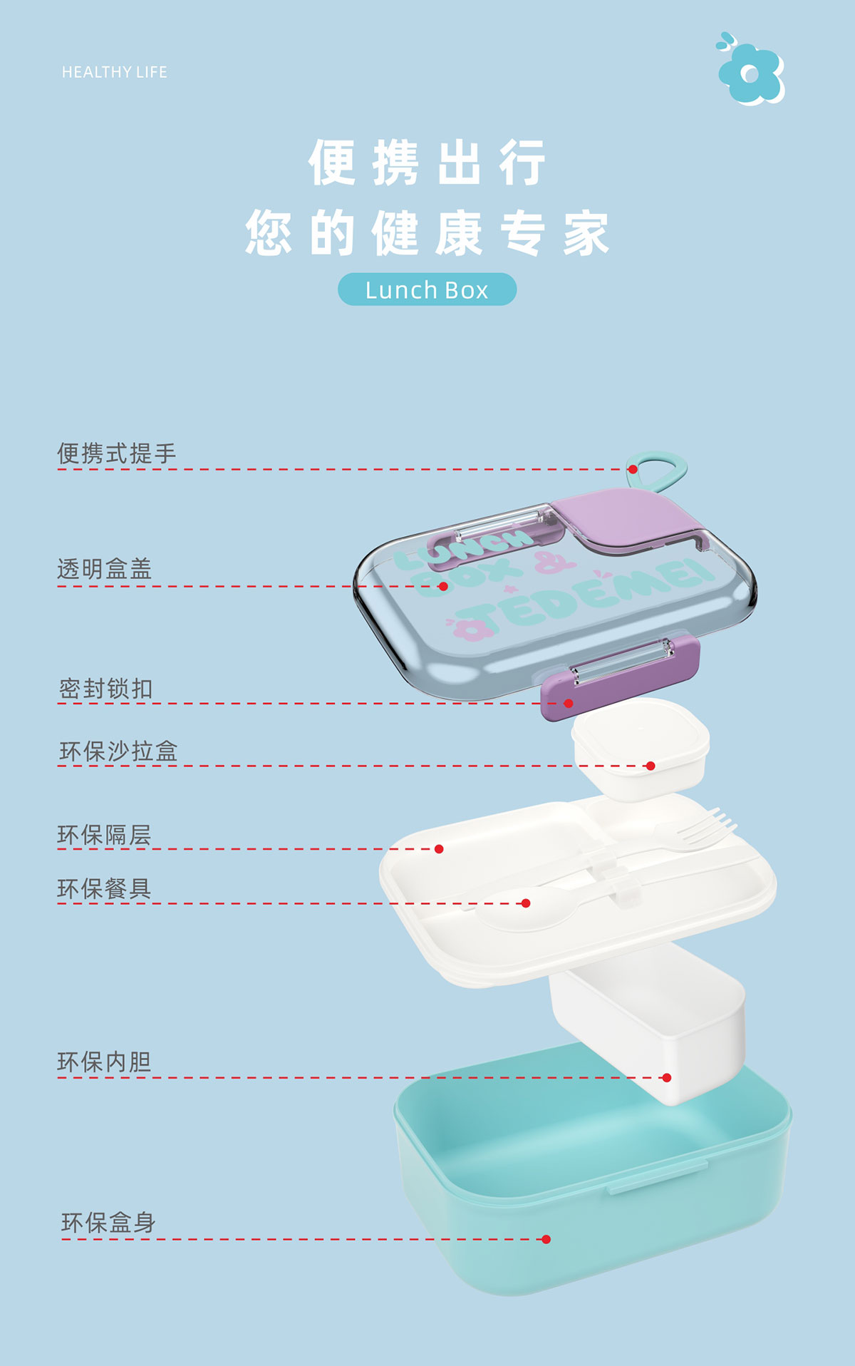 Size: 185*145*80mm/外盒:1.1L/內盒:200ml/沙拉盒:45ml