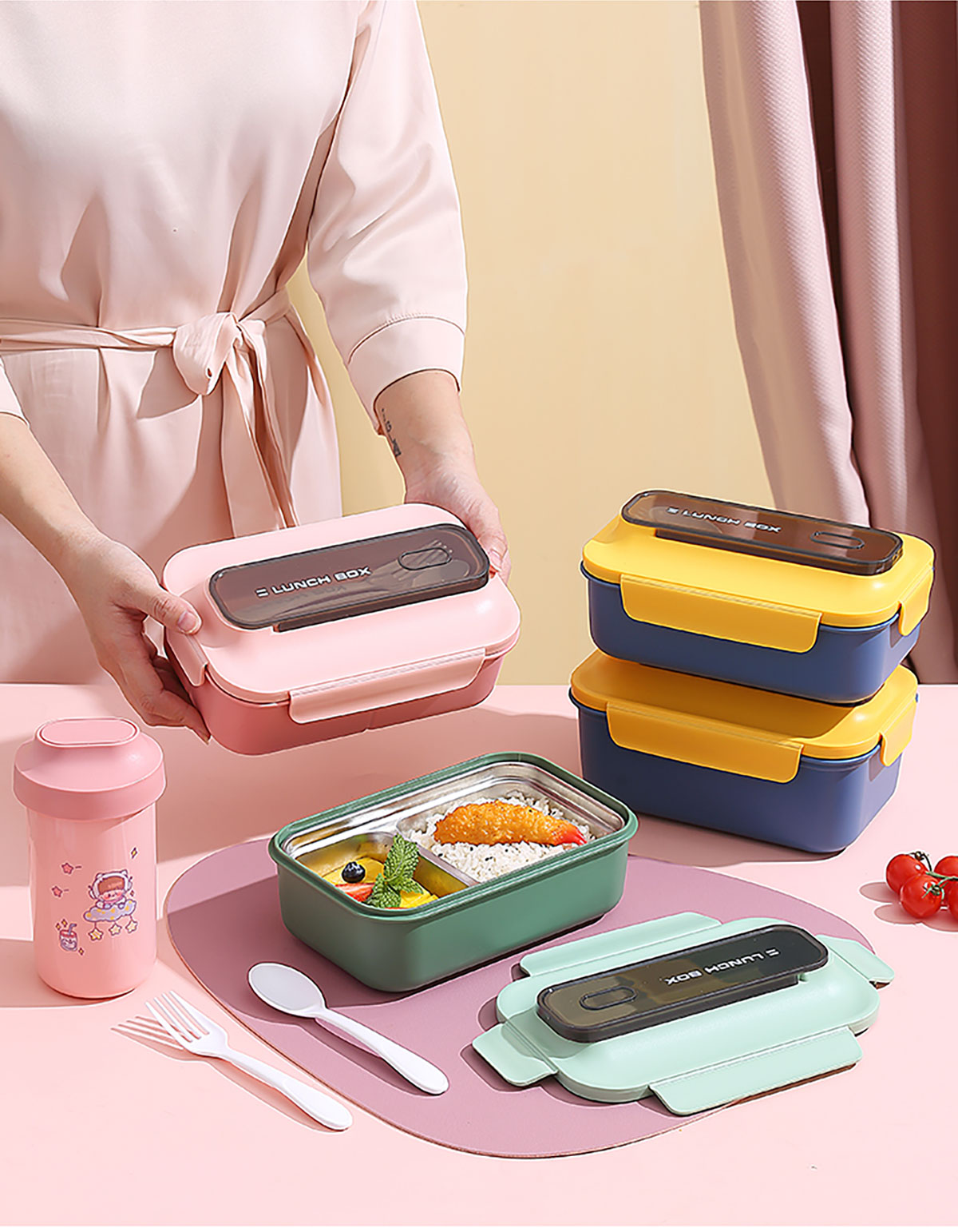 簡易便當(dāng)盒(PP款/PP加高款/不銹鋼款/套裝款) 老色