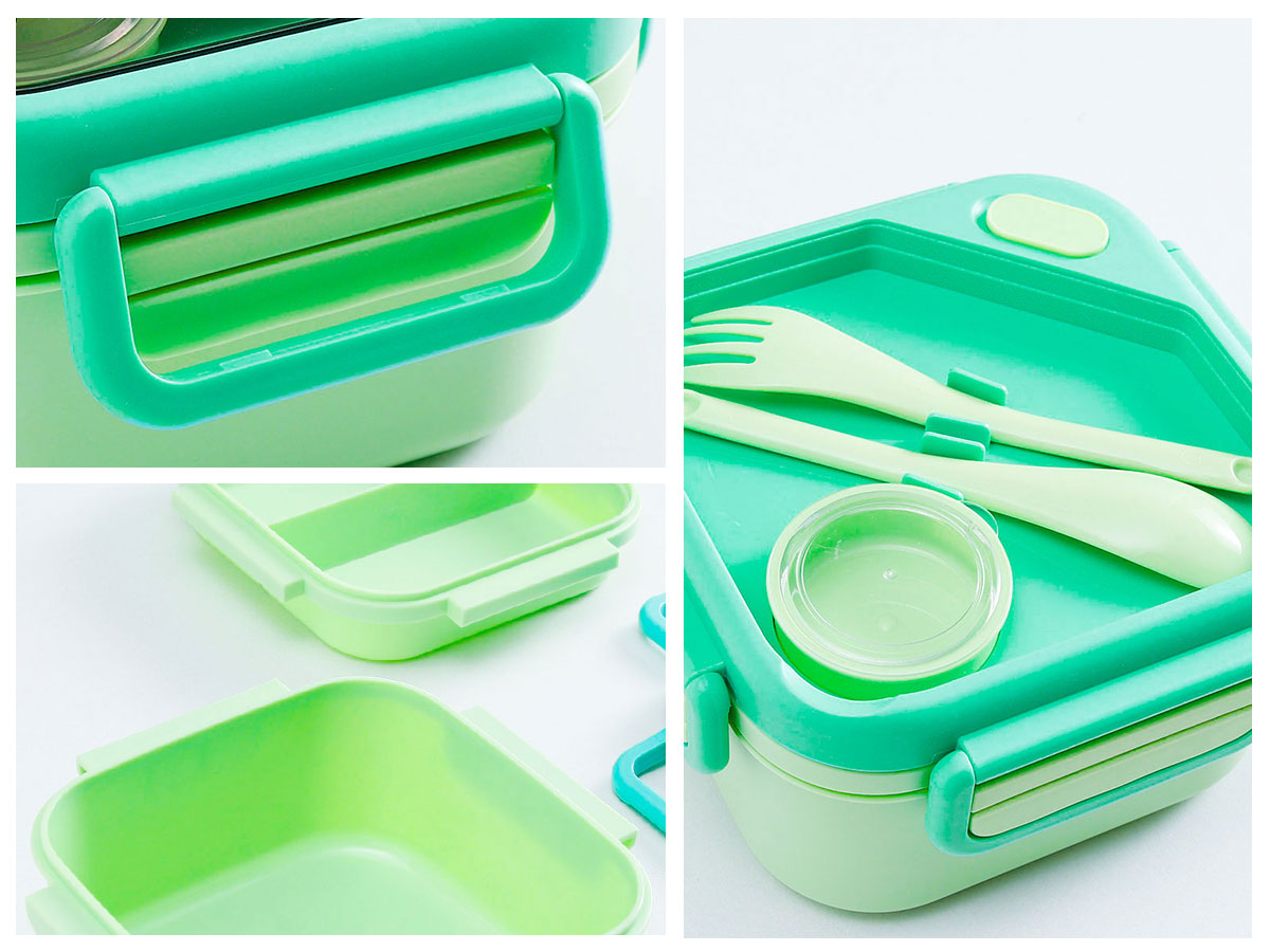 趣悅卡通正方雙層飯盒(含調(diào)料盒)+翻蓋吸嘴/旋蓋運動/翻蓋運動水壺