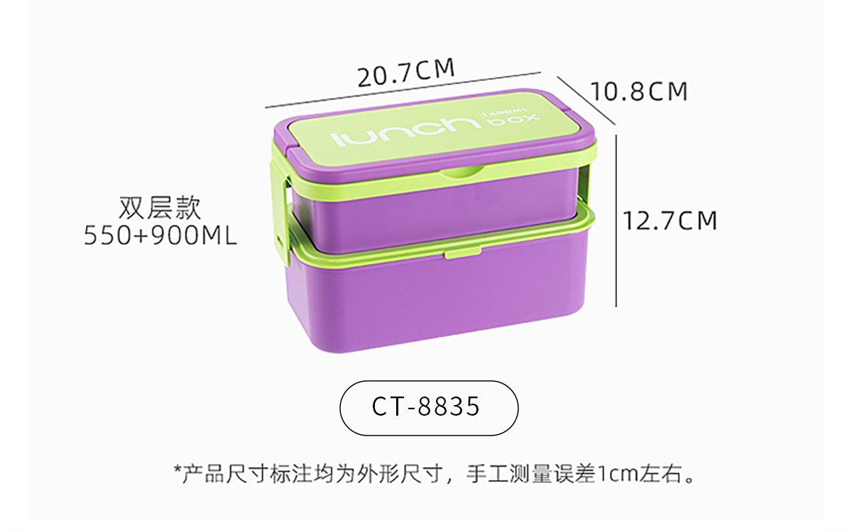 Size: CT-8835(雙層):207*108*127mm/550ml+900ml CT-8836(單層):207*108*84mm/900ml