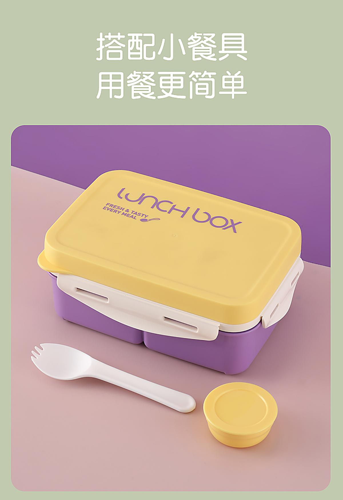 Size: 飯盒:210*150*83mm/1000ml 醬料盒:58*25mm/35ml 叉子:38*42mm