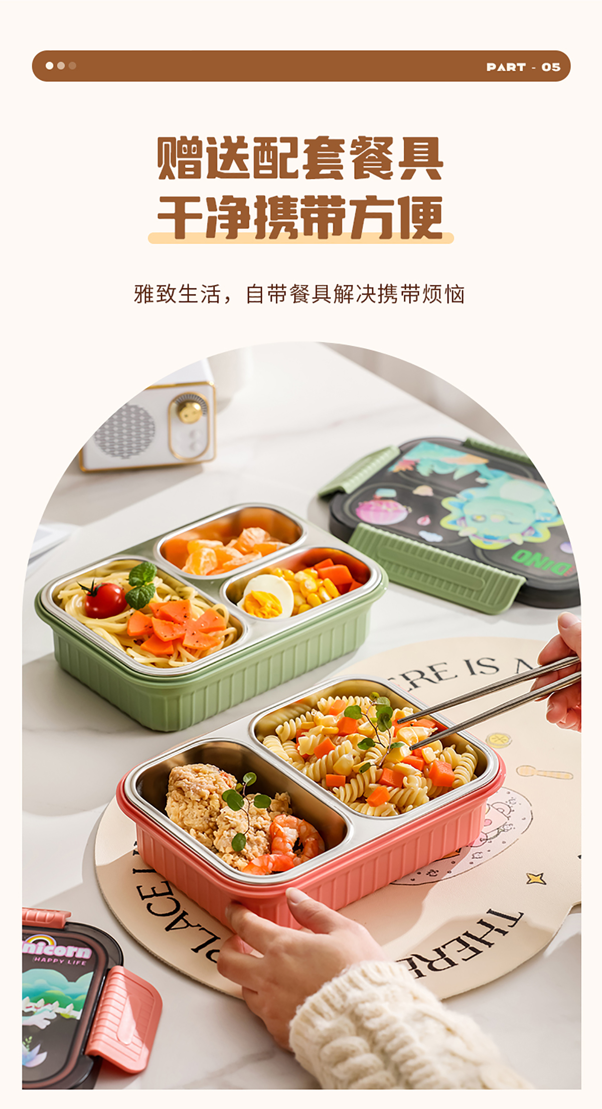 小號卡通密封不銹鋼餐盒(二格/三格)