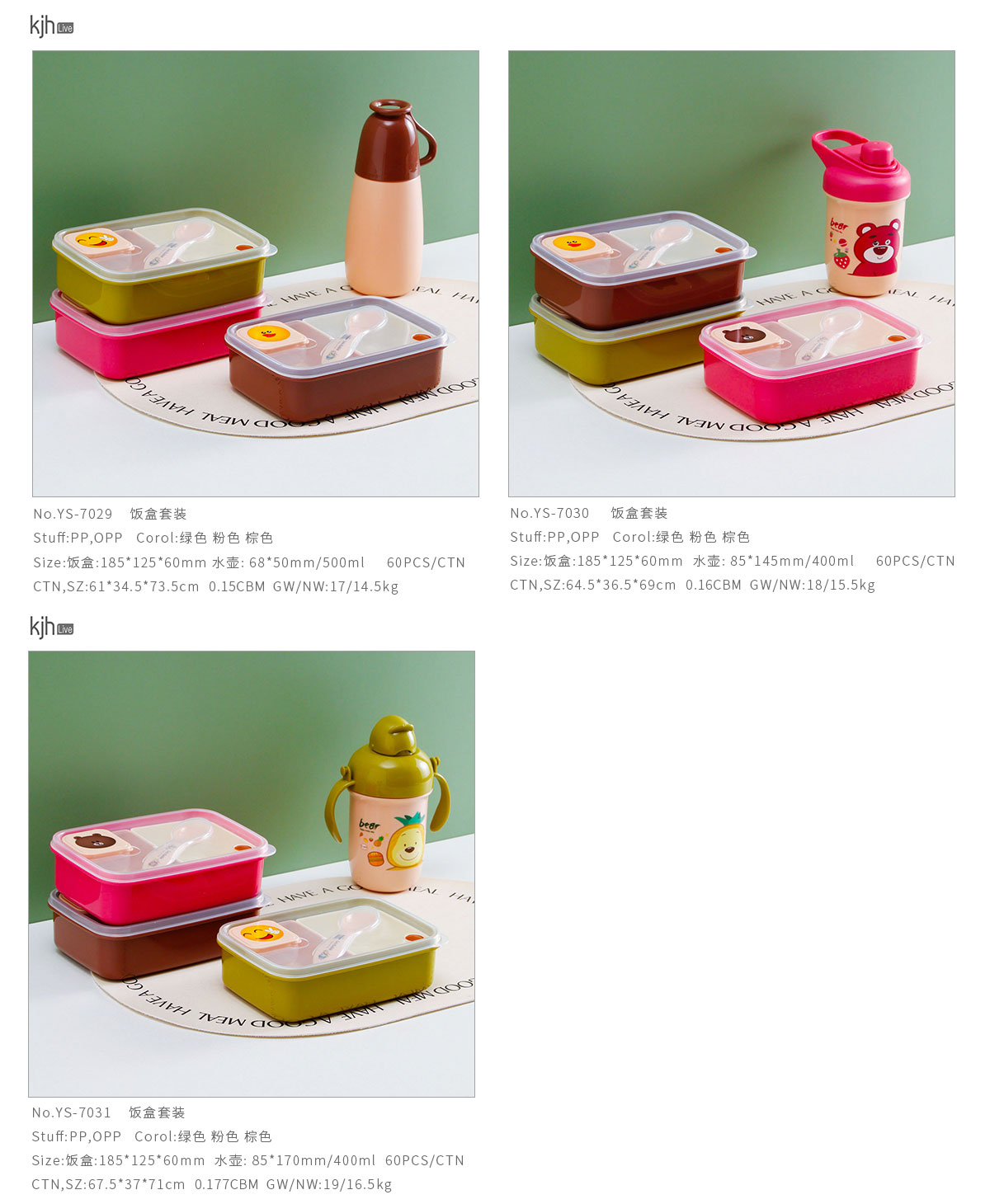 Size: YS-7029:飯盒:185*125*60mm/800ml 水壺: 68*50mm/500ml