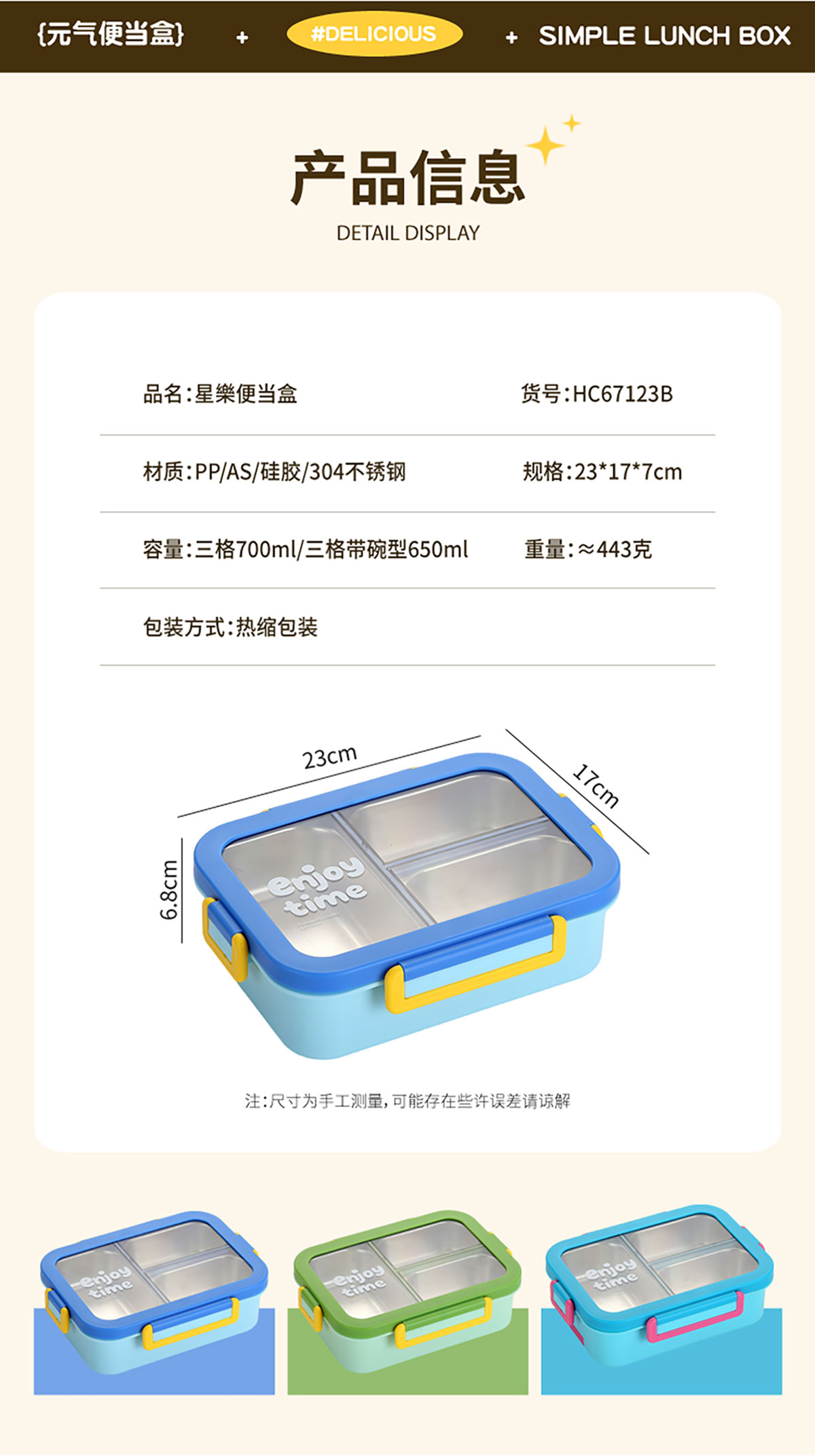 Size: 230*170*70mm(三格700ml/三格帶碗650ml)