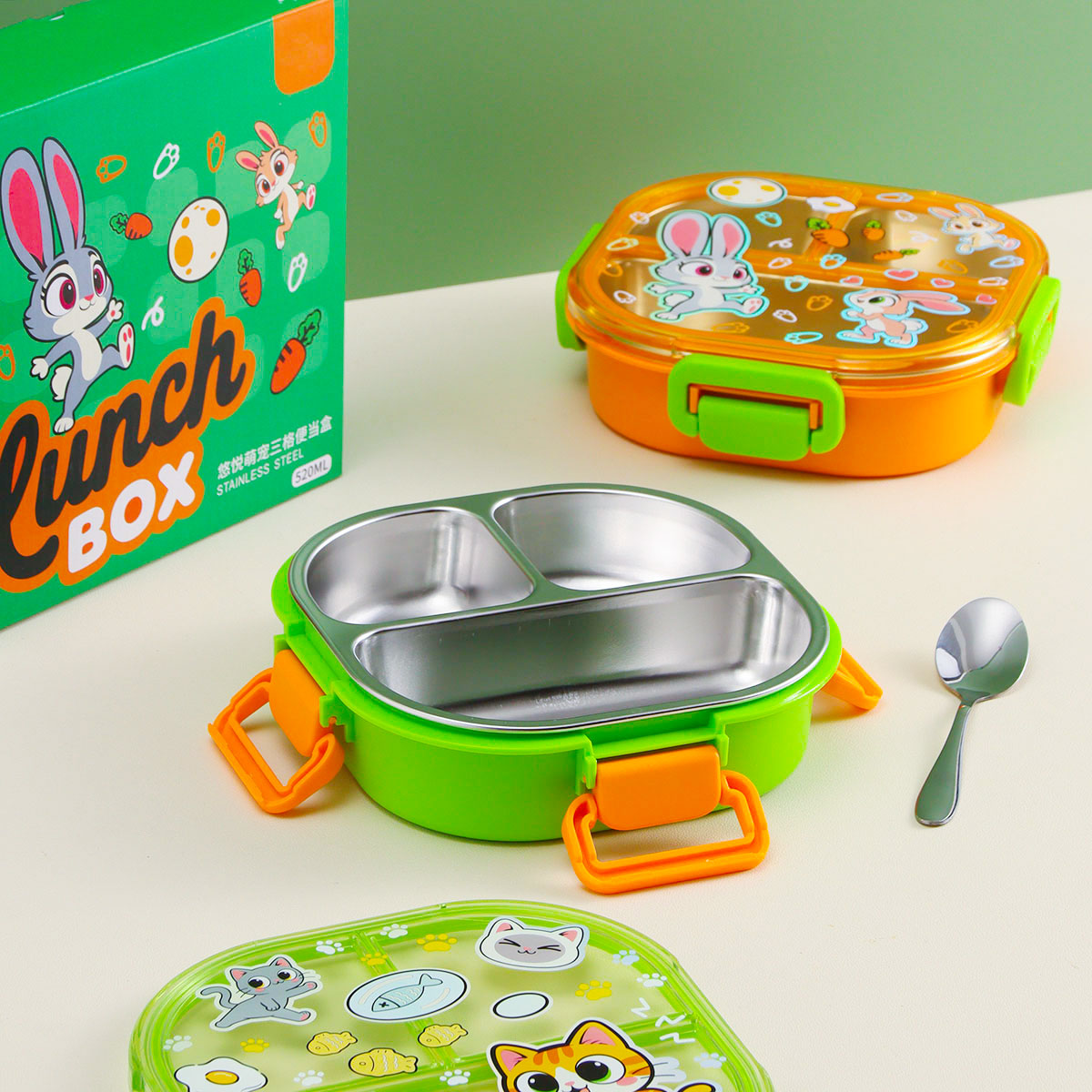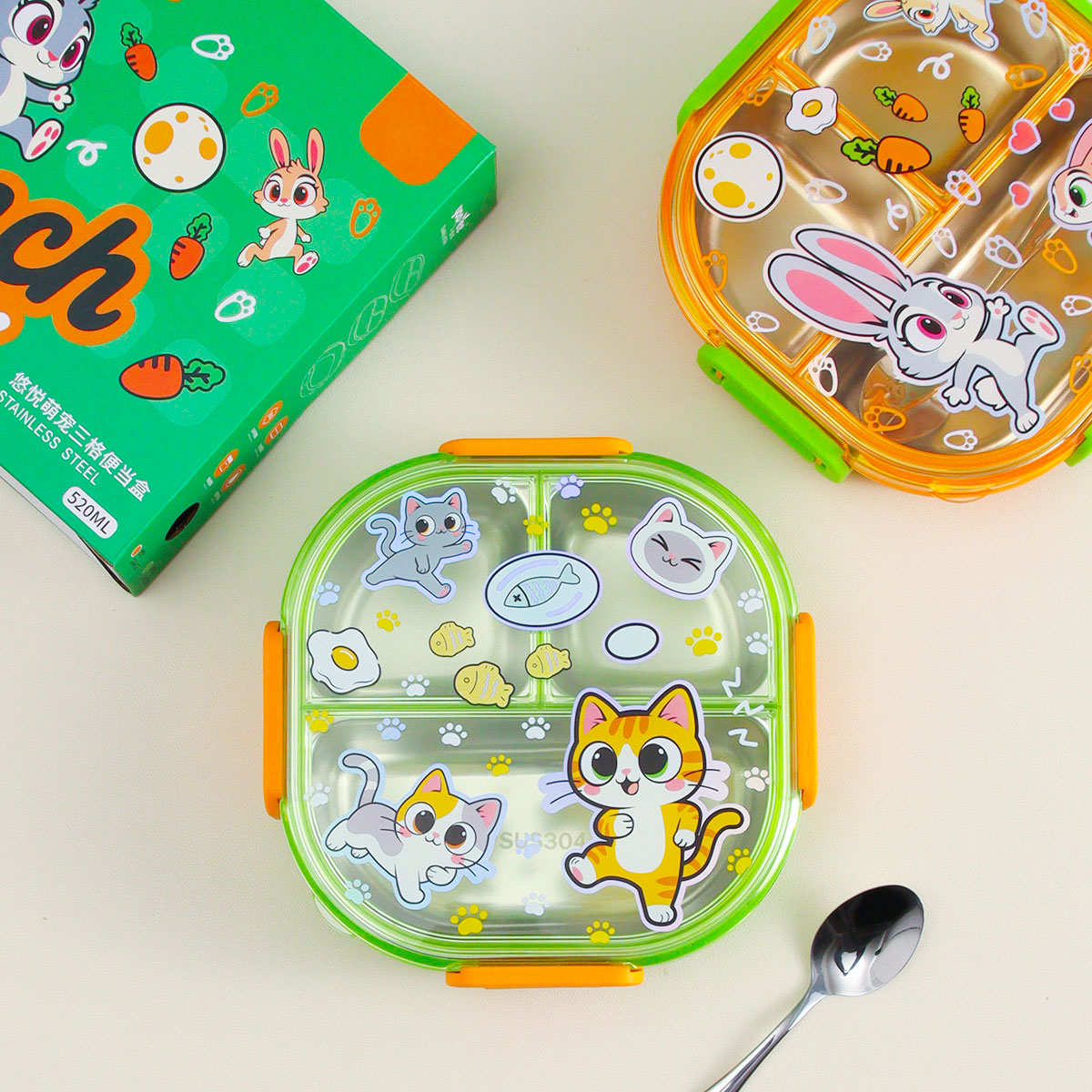 悠悅萌寵三格便當盒(520ml)