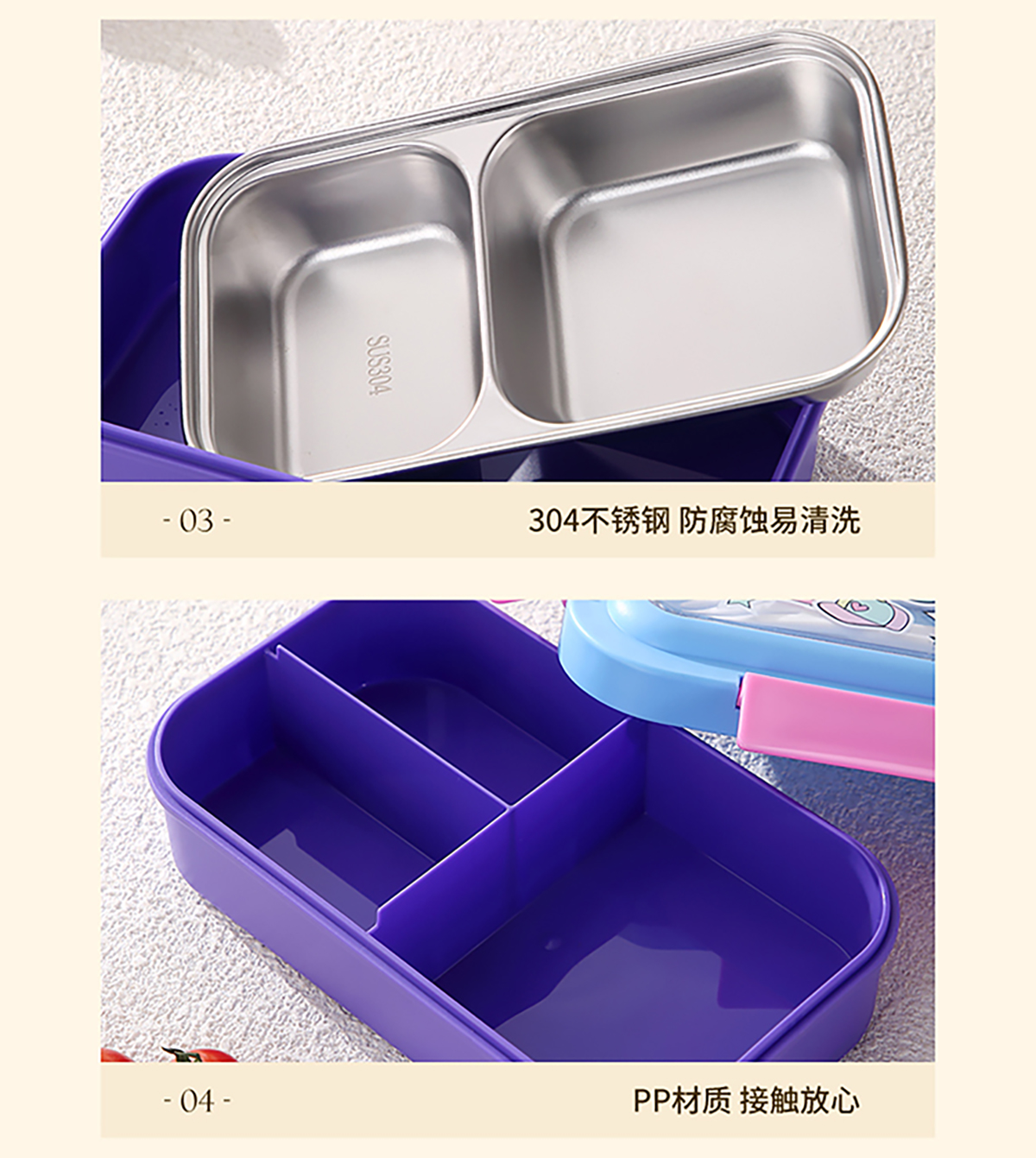星樂(lè)卡通便當(dāng)盒PP款740ml/不銹鋼款500ml