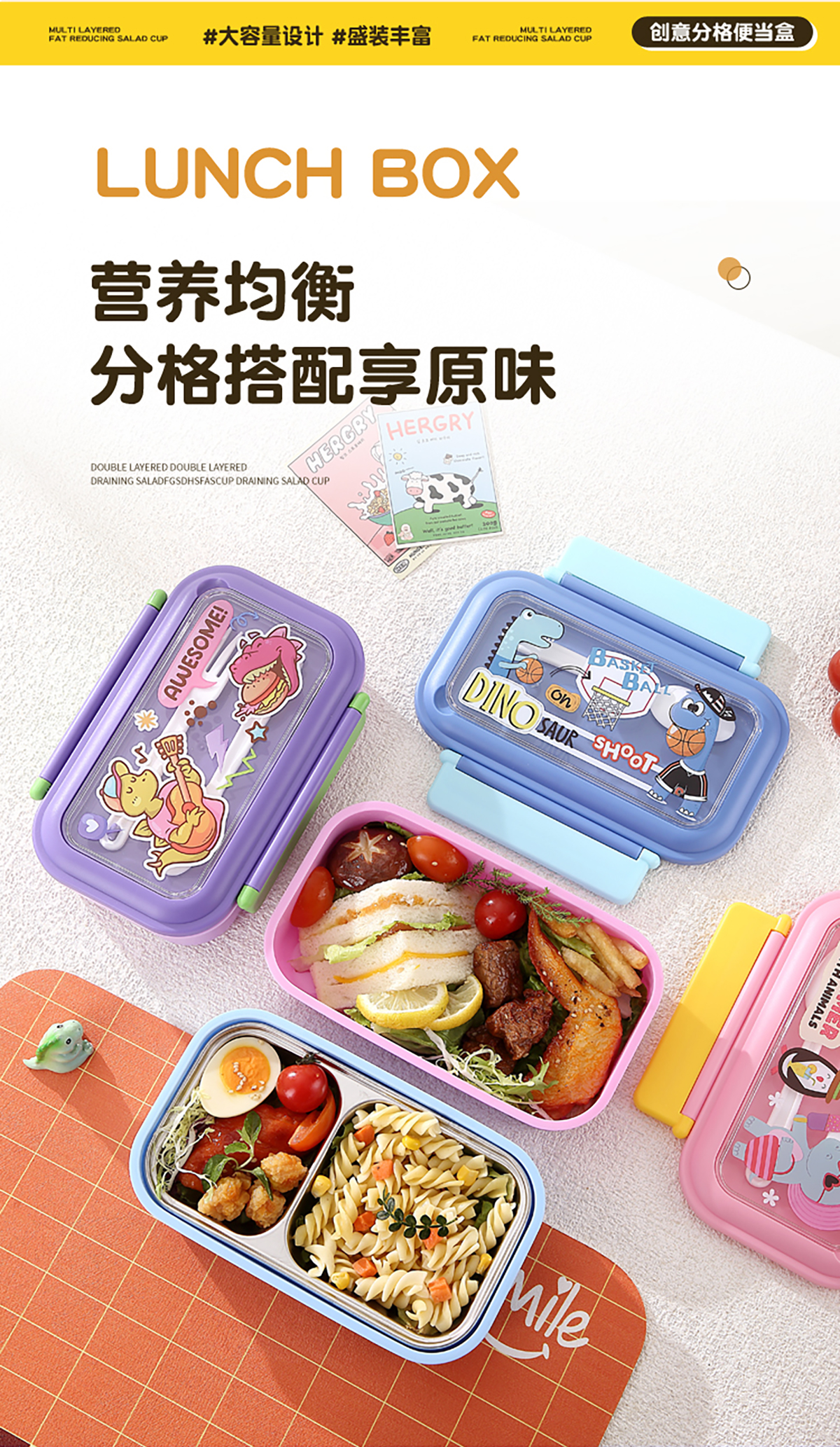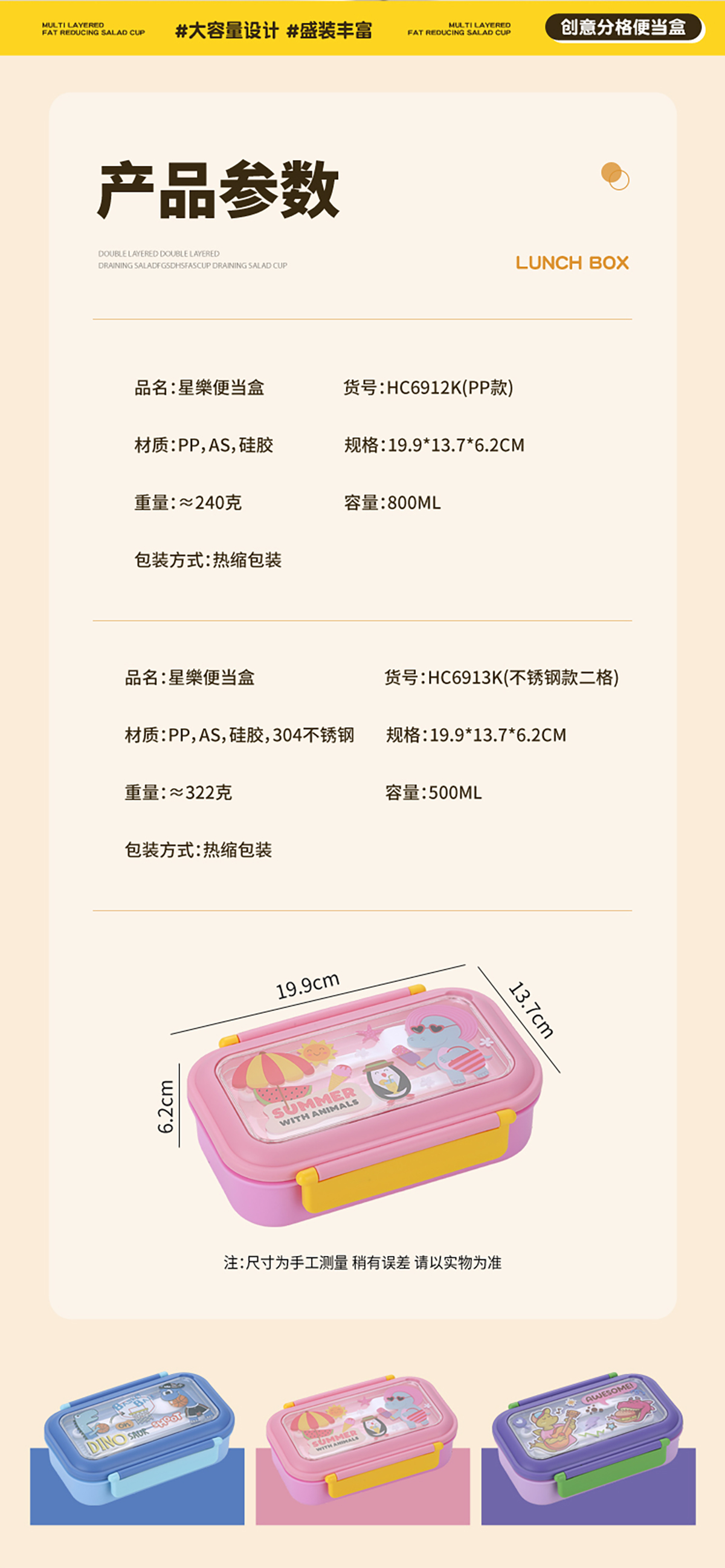 星樂卡通便當(dāng)盒PP款800ml/不銹鋼款500ml