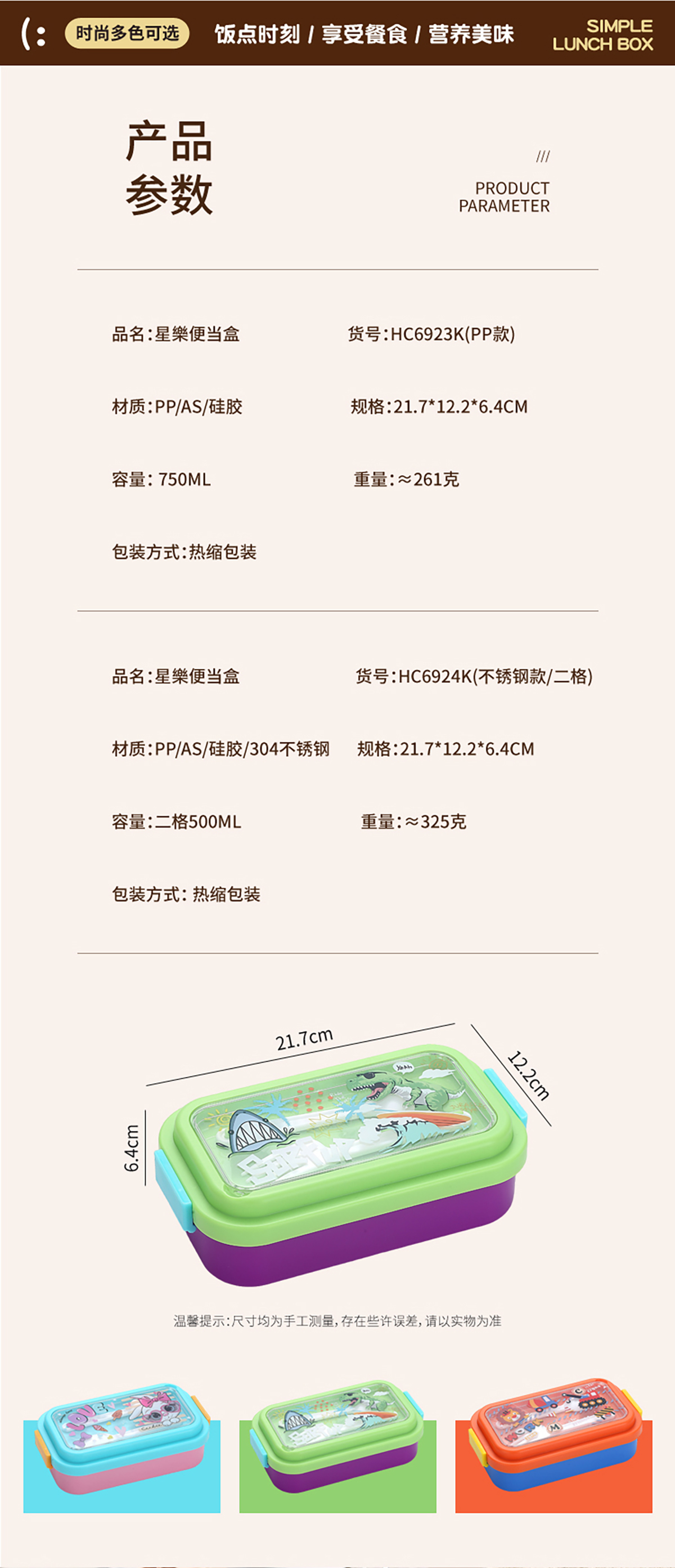 星樂卡通便當(dāng)盒PP款750ml/不銹鋼款500ml
